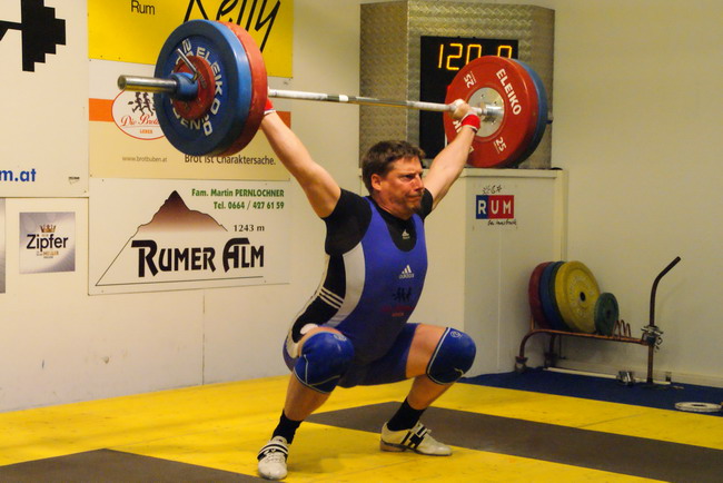 Mit einer 0 : 4 Heimniederlage endete der letzte Kampf in der diesjährigen Nationalliga für den KSV-RUM. Der Nationalliga-Meister ATSV Ranshofen zeigte keinerlei Schwäche und siegte unangefochten mit guten 1359 Punkten. Obwohl sich die Rumer Athleten ersatzgeschwächt mit aller Kraft gegen die Niederlage stemmten, mussten sie die Stärke des Gegners neidlos anerkennen. Mit 1198 erzielten Punkten zeigte unsere Mannschaft jedoch eine solide Leistung zum Saisonabschluss. Punktebester Athlet des gesamten Wettkampfes wurde ein Rumer. Thomas Hölzl kam mit 124 kg Reißen und 150 kg Stoßen auf ausgezeichnete 311 Punkte. Nur 1 Punkt weniger verbuchte der Ranshofener Patrick Dürnberger als Bester seiner Mannschaft. 116 kg Reißen und 142 kg Stoßen bedeuteten 310 Punkte. Eine weitere Premiere schaffte unser Jugendathlet Lukas Walkam. Lukas konnte erstmals die 100 kg - Zweikampfmarke knacken. Mit 46 kg im Reißen und 56 kg im Stoßen erzielte er jeweils neue Bestleistungen und kam auf gute 213 Punkte. Die weiteren Leistungen der Rumer Athleten: Martin Schneider - 249 Punkte (90 kg Reißen - 112 kg Stoßen) Gerhard Mörth - 196 Punkte (77 kg Reißen - 95 kg Stoßen) Thomas Schweninger - 228 Punkte (90 kg Reißen - 112 kg Stoßen) | ||||||||||||||||||||||||||||||||||||||||||||||||||||||||||||||||||||||||||||||||||||||||||||||||||