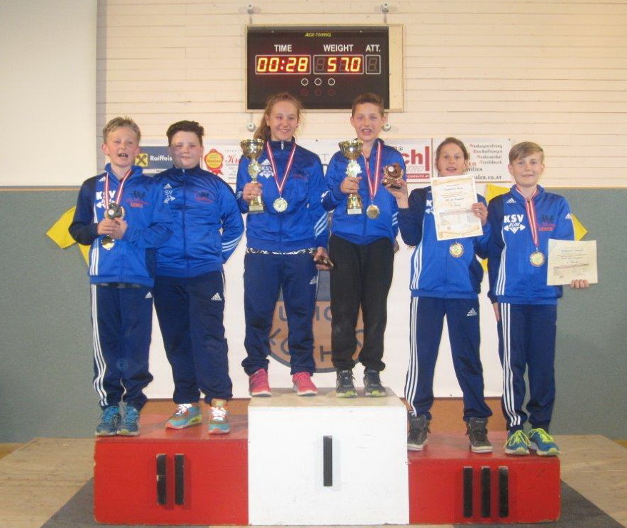 Österreichische Schülermeisterschaften im Gewichtheben und athletischem Mehrkampf Doppel-GOLD für Maximilian Uran und Victoria Steiner SILBER für Florian Barth - BRONZE für Anna Lamparter und Florian Ostheimer | ||||||||||||||||||||||||||||||||||||||||||||||||||||||||||||||||||||||||||||||||||||||||||||||||||||