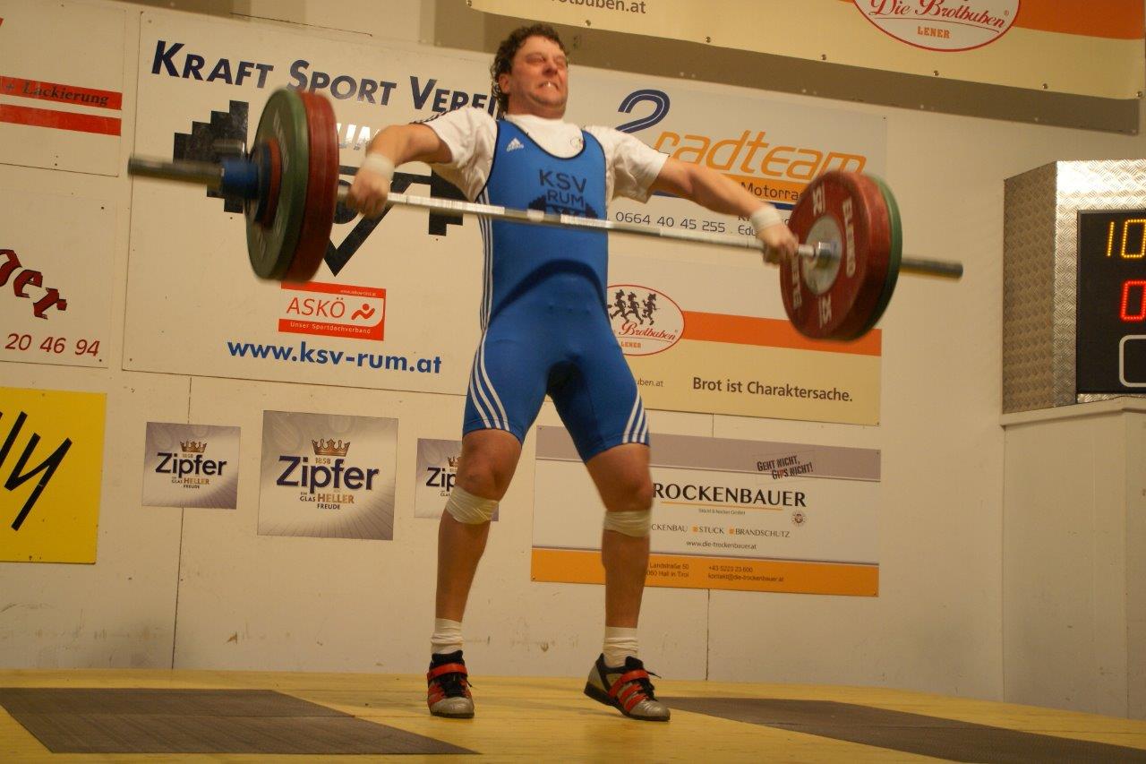 Mit einer 0 : 2 Niederlage endete die Nationalliga-Begegnung für den KSV-RUM gegen die Wettkampfgemeinschaft Wels / Buchkirchen. Mit Martin Schneider und Christoph Uran fehlten verletzungsbedingt zwei Stützen in der Mannschaft. So war die Niederlage mit 91 Punkten nicht zu verhindern. Nach einem Sieg und zwei Niederlagen ist für den KSV-RUM als Titelverteidiger der Nationalliga West nur mehr das "kleine Finale" um die Plätze 5 bis 9 machbar. Trotz der Niederlage stellten die Rumer mit Routinier Hermann Uran den stärksten Athleten des Wettkampfes. Mit 104 kg Reißen und 118 kg Stoßen kam Hermann auf ausgezeichnete 264,4 Punkte. Dicht gefolgt von Markus Giacomuzzi der 245,6 Punkte (220 kg Zweikampf) zur Mannschaftsleistung beisteuerte. Die weiteren Leistungen: Samuel Maier - 225,6 Punkte (70 kg Reißen / 85 kg Stoßen) Stefan Haider - 210,5 Punkte (85 kg Reißen / 100 kg Stoßen) Mathias Hölbling - 205,3 Punkte (75 kg Reißen / 95 kg Stoßen) Punktebester Athlet auf Seiten des Gegners war Jürgen Pfaffenberger mit 258,3 Punkten. Derzeit liegt der KSV-Rum auf dem 3. Platz der Tabelle in der Nationalliga - West. | |||||||||||||||||||||||||||||||||||||||||||||||||||||||||||||||||||||||||||||||||||||||||||||||||||