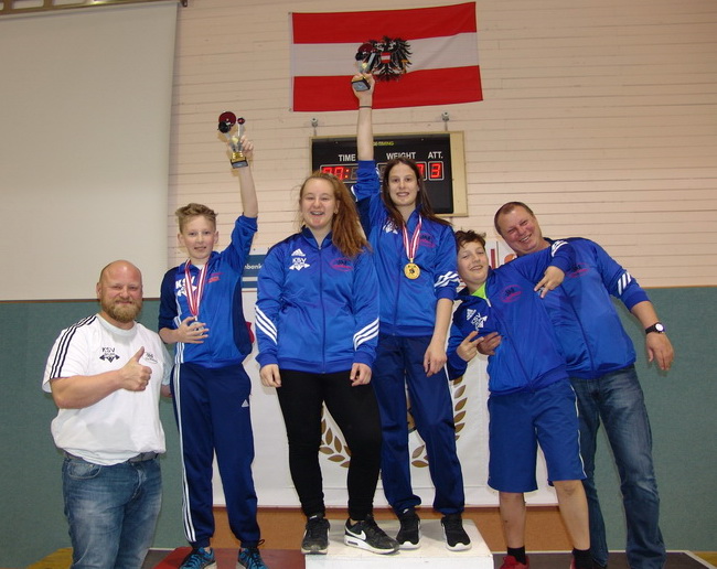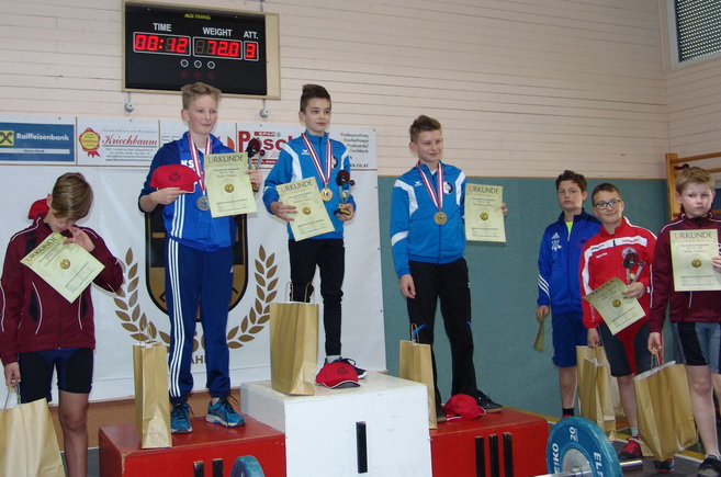Florian Barth (U 13) lieferte einen sehenswerten Wettkampf und konnte sich über 2 x Silber im Gewichtheben (35 kg Reißen / 42 kg Stoßen) und Mehrkampf freuen. Bei seiner Bestleistung im Stoßen von 42 kg erhielt Florian die Höchstwertung für die technische Ausführung. Im 30-Meter-Sprint war Florian mit 4,99 sec. der Schnellste des gesamten Teilnehmerfeldes. Trotzdem musste er die Überlegenheit des Linzers Luca Modrey (570 Pkt) anerkennen. Maximilian Uran überzeugte in der U 13-Klasse der Burschen und konnte sich dort mit der neuen Zweikampfbestleistung von 79 kg auf dem 5. Platz klassieren. In der Mannschaftswertung belegten die KSV-Youngsters den 5. Platz. | ||||||||||||||||||||||||||||||||||||||||||||||||||||||||||||||||||||||||||||||||||||||||||||||||||||||
