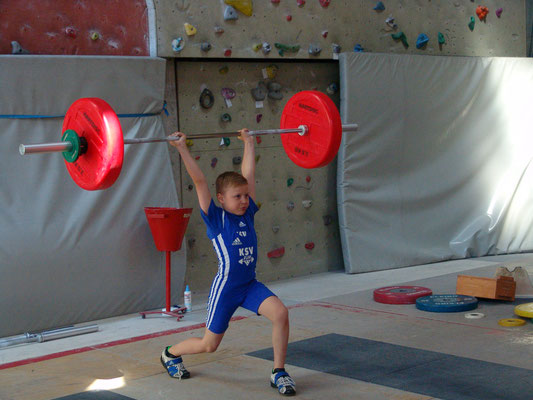 | Der erst 9-jährige Rumer Josef Stöckl konnte bei seinem Debüt auf der Wettkampfbühne vollends überzeugen. Mit 6 gültigen Versuchen kam er auf 11 kg im Reißen und 14 kg im Stoßen und konnte mit 384 Punkten im Mehrkampf seinen ersten Sieg verbuchen. Am 2. Platz klassierte sich Philipp Wurzer vom KSC Bad Häring. | |||||||||||||||||||||||||||||||||||||||||||||||||||||||||||||||||||||||||||||||||||||||||||||||||||