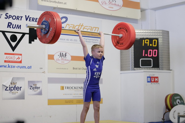| Seinen Premierentitel in der Jugendklasse (U 15) konnte Maximilian Uran feiern. Mit 46 kg Reißen stellte er eine neue Bestleistung auf. Bei den notwendigen 54 kg im Stoßen für den ersten 100er scheiterte er nur knapp - also nur mehr eine Frage der Zeit bis die erste Schallmauer fällt! | ||||||||||||||||||||||||||||||||||||||||||||||||||||||||||||||||||||||||||||||||||||||||||||||||||||