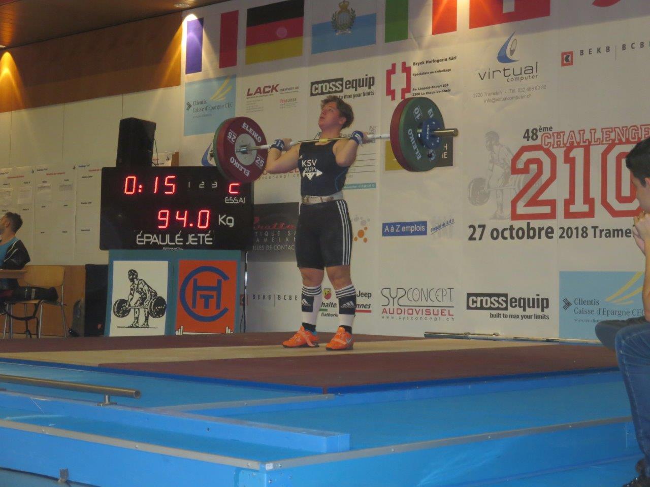 Einen großartigen Erfolg konnten die Youngsters des KSV-RUM beim internationalen Turnier "Challenge 210" in Tramelan, bei dem 151 Starter aus 8 Nationen vertreten waren, für sich verbuchen. Allen voran Victoria Steiner. Victoria zeigte sich in Topform und konnte ihre Bestleistungen auf 77 kg Reißen und 98 kg Stoßen erhöhen. Diese Leistung bedeutete insgesamt 20 neue Tiroler Rekorde von der Jugend- bis zur Allgemeinen Klasse und zugleich die Erbringung des Limits für die Jugend-Weltmeisterschaft 2019 in Las Vegas. In der Gesamtwertung - 210 - belegte Victoria den 2. Platz unter 22 Starterinnen. | ||||||||||||||||||||||||||||||||||||||||||||||||||||||||||||||||||||||||||||||||||||||||||||||||||||