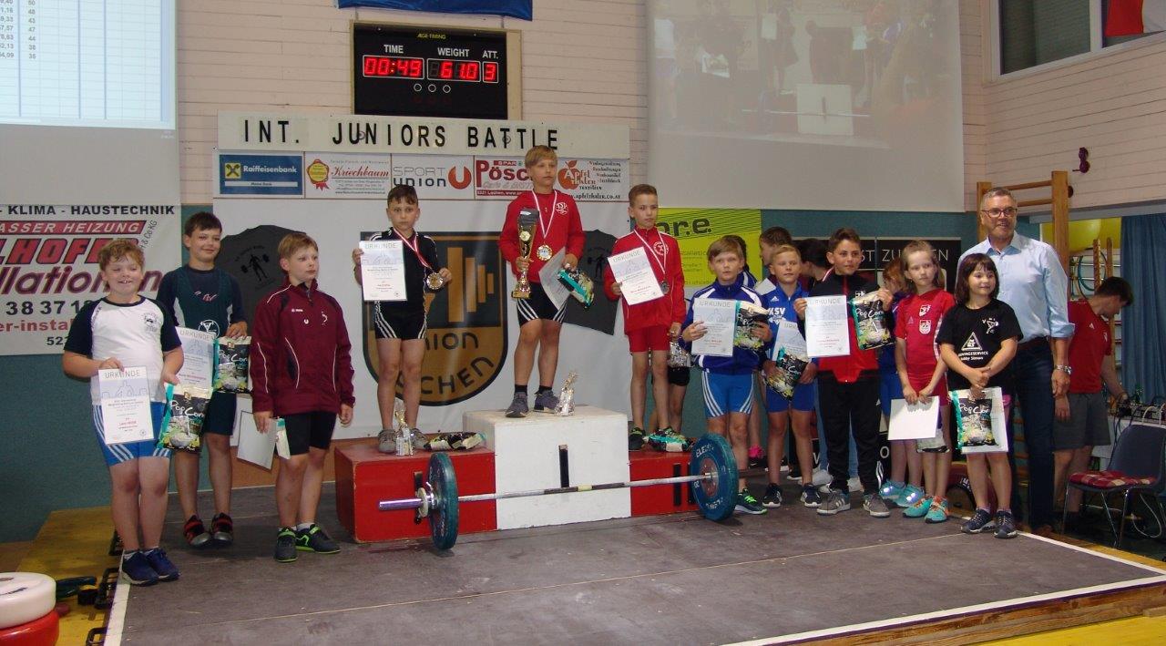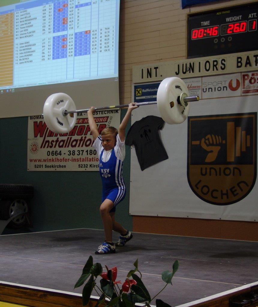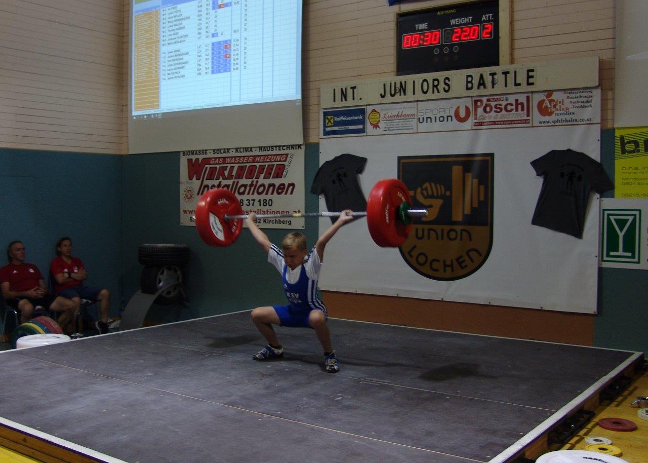 Eines der größten internationalen Nachwuchsturniere fand vergangenes Wochenende beim USV Lochen (OÖ) statt. Dabei konnten die Rumer Nachwuchshoffnungen Stöckl Josef und Barth Florian sich super in Szene setzen. Josef startete in der U11-Wertung und konnte fünf Versuche gültig zur Hochstrecke bringen. Mit 124,62 Sinclairpunkten schaffte er hinter drei deutschen Athleten den ausgezeichneten vierten Platz (22 kg / 31 kg / 53 kg ZWK). Einen starken Wettkampf absolvierte auch Barth Florian. Der Jugendliche (Klasse U15) zeigte sechs tolle Versuche und konnte sowohl im Reißen (53 kg) als auch im Stoßen (63 kg) und natürlich im Zweikampf (116 kg) neue Bestleistungen erzielen. In der Endabrechnung wurde es mit nur 3,12 Punkten Rückstand auf dem Sieger der starke vierte Platz! Mit diesem tollen Auftreten können die Rumer Jungs super zufrieden und stolz auf ihre Platzierungen sein. Vielen Dank auch an das Betreuer-Team Huber Manfred - Weber Richi - Stöckl Wolfgang!! |