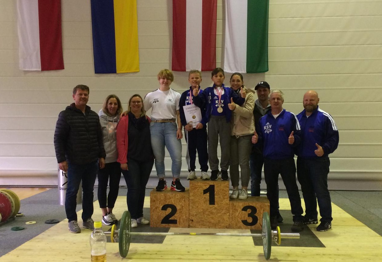 Einen großartigen Erfolg konnten unsere beiden Jüngsten Nachwuchshoffungen bei den österr. Schülermeisterschaften im steirischen Öblarn feiern! Maximilian Aigner - mit seinen 8 Jahren der Jüngste im ganzen Starterfeld - konnte sich gegen seine älteren Gegener durchsetzen und holte sich mit 372,9 Punkten die Goldmedaille im athletischen Mehrkampf der U 9 Wertung! Hier hat sich wieder einmal gezeigt, wie wichtig die allgemeine Körperausbildung ist. Maxi war im Sprint mit 5,7 sec und im Kugelwurf mit 6,92 der Schnellste bzw. Weiteste. Im 3-Hopp-Sprung musste er sich mit dem 2. Platz begnügen... Mit guten 5,02 Metern fehlten nur 10 cm damit er der Weiteste gewesen wäre. Einfach nur supi!! Josef Stöckl (10 Jahre alt) wollte da natürlich nicht nachstehen. Bereits im Gewichtheben konnte er sich mit 20 kg im Reißen und 27 kg im Stoßen die vielumjubelte Goldmedaille sichern. Mit 189,5 Punkten erreichte er die höchste Punkteanzahl der gesamten Altersgruppe! 4,5 von 5 erreichbaren Punkten in der Technikwertung war die Höchstwertung in dieser Gruppe - sie wurde nur 2 mal bei insgesamt 66 Versuchen vergeben. Und Josef bekam die 4,5 für seinen 18 kg Versuch im Reißen! Bravo Josef In der Leichtathletik konnte Josef seinen Vorsprung aus dem Gewichtheben noch ausbauen und siegte schlussendlich mit 448,7 Punkten überlegen auch im Mehrkampf. Sein Vorsprung auf den Zweitplatzierten betrug 50 Punkte! Somit darf sich Josef stolz als 2 - facher österr. Schülermeister feiern lassen. Hier sieht man wieder wie wichtig eine gute Technik ist! Ein großes DANKE an alle die mit den Jung´s so fleißig trainieren!! | |||||||||||||||||||||||||||||||||||||||||||||||||||||||||||||||||||||||||||||||||||||||||||||||||||||