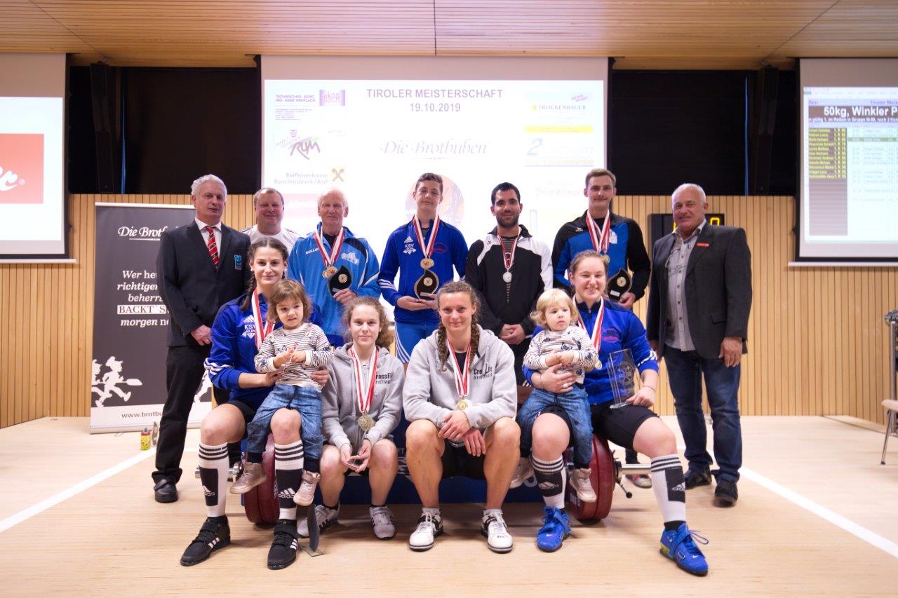 Die Tiroler Meister der Allgemeinen Klasse - Frauen: Kat. -49 kg: Ronja Holzknecht (SC Kroftlaggl) - 65 kg ZWK Kat. -64 kg: Anna Lamparter (KSV-RUM) - 129 kg ZWK Kat. -76 kg: Victoria Steiner (KSV-RUM) - 170 kg ZWK Männer: Kat. -67 kg: Hans Kreisser (Bad Häring) - 110 kg Kat. -73 kg: Maximilian Uran (KSV-RUM) - 131 kg Kat. -81 kg: Armin Ritzer (Bad Häring) - 245 kg Kat. -89 kg: Luca Volgger (SC Kroftlaggl) - 216 kg Kat. -96 kg: Hermann Uran (KSV-RUM) - 208 kg Kat. -102 kg: Markus Giacomuzzi (SC Kroftlaggl) - 209 kg Kat. -109 kg: Alexandros Nathanailidis (KSV-RUM) - 241 kg Kat. +109 kg: Michael Habetin (1. AKI) - 238 kg | |||||||||||||||||||||||||||||||||||||||||||||||||||||||||||||||||||||||||||||||||||||||||||||||||||||