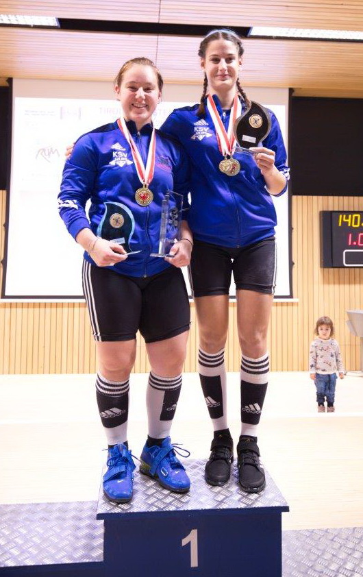 Bei der Tiroler Meisterschaft der Allgemeinen Klasse im Gewichtheben auf heimischer Treppe im neuen SportzentRUM konnten die Männer und Frauen des KSV-RUM überzeugen. Mit insgesamt 12 Titeln von der Allgemeinen Klasse bis zu der U-20-Klasse sowie 2 Silbermedaillen waren die Rumer der erfolgreichste Verein. Bei den Frauen konnten unsere beiden Nationalkaderathletinnen ihre Titel in der Allgemeinen Klasse aus dem Vorjahr erfolgreich verteidigen. Anna Lamparter (Kat. -64 kg) und Victoria Steiner (Kat. -76 kg) gewannen zusätzlich auch die Titel der U-20-Klasse. Den Titel Tagesbeste bei den Frauen sicherte sich Victoria Steiner mit 219,6 Punkten und einer Leistung von 75 kg Reißen und 95 kg Stoßen. | |||||||||||||||||||||||||||||||||||||||||||||||||||||||||||||||||||||||||||||||||||||||||||||||||||||