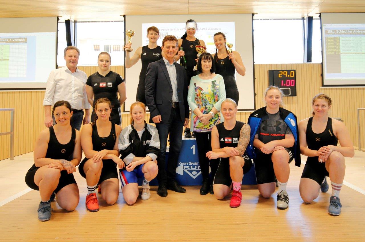 Das neue Sportzentrum in Rum war Schauplatz für die erste Runde im Tirol-Cup 2019. Der KSV-Rum durfte zum ersten Mal einen Wettkampf in den neuen Räumlichkeiten austragen und sich über ein tolles Starterfeld mit 10 Damen und 13 Herren freuen. Auch das Interesse der Zuschauer war gewaltig und die Teilnehmer konnten sich über viel Applaus freuen. Natürlich war die Anspannung der Rumer Funktionäre riesengroß ob wirklich alles funktionieren wird. Aber man kann auf alle Fälle sagen, dass die Feuertaufe mit Bravour bestanden wurde. Auch die Athletinnen und Athleten zeigten sich begeistert und stellten gleich tolle Leistungen auf. Den Anfang machten die Damen wobei gleich sieben Starterinnen das erste Mal dabei waren. Alle waren mit vollem Eifer und super Einstellung dabei und es wurde nur ein Versuch nicht gültig absolviert. Den Sieg bei den Frauen holte sich Richler Vera vom SV Heavy Load Fritzens mit 157,43 Punkten. Auf den zweiten Platz konnte sich Dörner Rebecca vom SC Kroftlaggl Kirchbichl platzieren (142,76 Punkte). Norz Tamara vom SV Heavy Load Fritzens schaffte Platz drei (138,66 Punkte) und durfte ebenfalls auf das Siegerpodest. Nochmal ein großes Lob an die restlichen Athletinnen die wirklich schöne Leistungen erzielt haben. | ||||||||||||||||||||||||||||||||||||||||||||||||||||||||||||||||||||||||||||||||||||||||||||||||||||