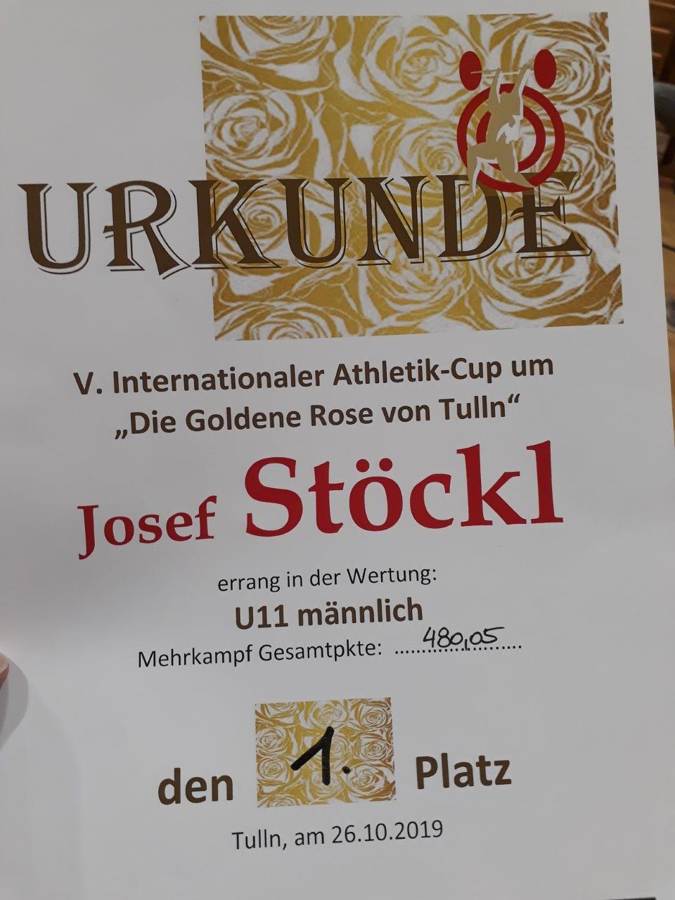 Eine Reise wert war für die KSV-Youngsters die Fahrt zum Internationalen Athletic Cup in Tulln. Die Wertung erfolgte im Mehrkampf mit Gewichtheben, 30-Meter-Sprint, 3-Hopp-Sprung und Kugel-Schockwurf. Hier zeigte sich wieder einmal dass sich das regelmäßige Leichtathletik-training auf der neuen Laufbahn im Sportzentrum auszahlt. Unserer Youngsters konnten 3 von 8 möglichen Siegen einfahren. Den Beginn machte unser Jüngster - Maximilian Aigner in der U-9-Klasse. Maxi überzeugte im Gewichtheben mit einer sauberen Technik und erhielt dafür als einziger Athlet des gesamten Starterfeldes für alle Versuche die Höchstnote. Damit konnte er sich bereits einen Vorsprung sichern den er in der Leichtathletik souverän verteidigte. Der Lohn war die Goldmedaille sowie der Gesamtsieg im österreichischen Schülercup der U-9-Klasse! Einen hart erkämpften Sieg verbuchte Josef Stöckl in der U-11-Klasse. Den Grundstein für die Goldmedaille legte Josef mit der neuen Bestleistung von 60 kg im Zweikampf (26 kg Reißen / 34 kg Stoßen. Nach der Leichtathletik blieben dann 5 Punkte Vorsprung auf die Verfolger übrig. Mit diesem Erfolg konnte Josef zudem die Silbermedaille im österreichischen Schülercup 2019 nach Rum holen! Den 3. Sieg für den KSV-RUM holte unsere A-Kader-Athletin Anna Lamparter in der U-15-Klasse. Mit 59 kg Reißen und 75 kg Stoßen zeigte Anna eine gute Leistung im Gewichtheben. In der Leichtathletik war Anna dann eine Klasse für sich und war in allen Disziplinen die Schnellste bzw. Weiteste bei den Mädchen. Maximilian Uran rundete den Erfolg mit einem 3. Platz in der U-15-Wertung ab. Maximilian konnte dabei vor allem in der Leichtathletik mit Bestmarken des gesamten Starterfeldes überzeugen. Auch wenn die Jung´s etwas enttäuscht waren da sie keine Rosen gewonnen haben..... so war es doch ein super Wettkampf und ein großer Erfolg für unsere Jung´s und Mädels!! Nächstes Jahr holen wir uns die Rosen!! | ||||||||||||||||||||||||||||||||||||||||||||||||||||||||||||||||||||||||||||||||||||||||||||||||||||
