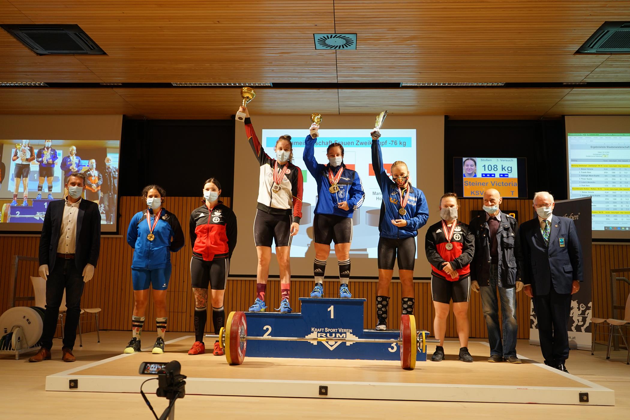 alles war ein bischen anders als vorher aber wir haben es trotzdem gewagt im Sinne des Sports und für unsere starken Mädels Siegerehrung mit Mund-Nasen-Schutz Bürgermeister Edgar Kopp Vize-BGM Franz Saurwein ÖGV-Präsident Gerhard Peya und die Mädels der Kat. -76 kg | ||||||||||||||||||||||||||||||||||||||||||||||||||||||||||||||||||||||||||||||||||||||||||||||||||||||