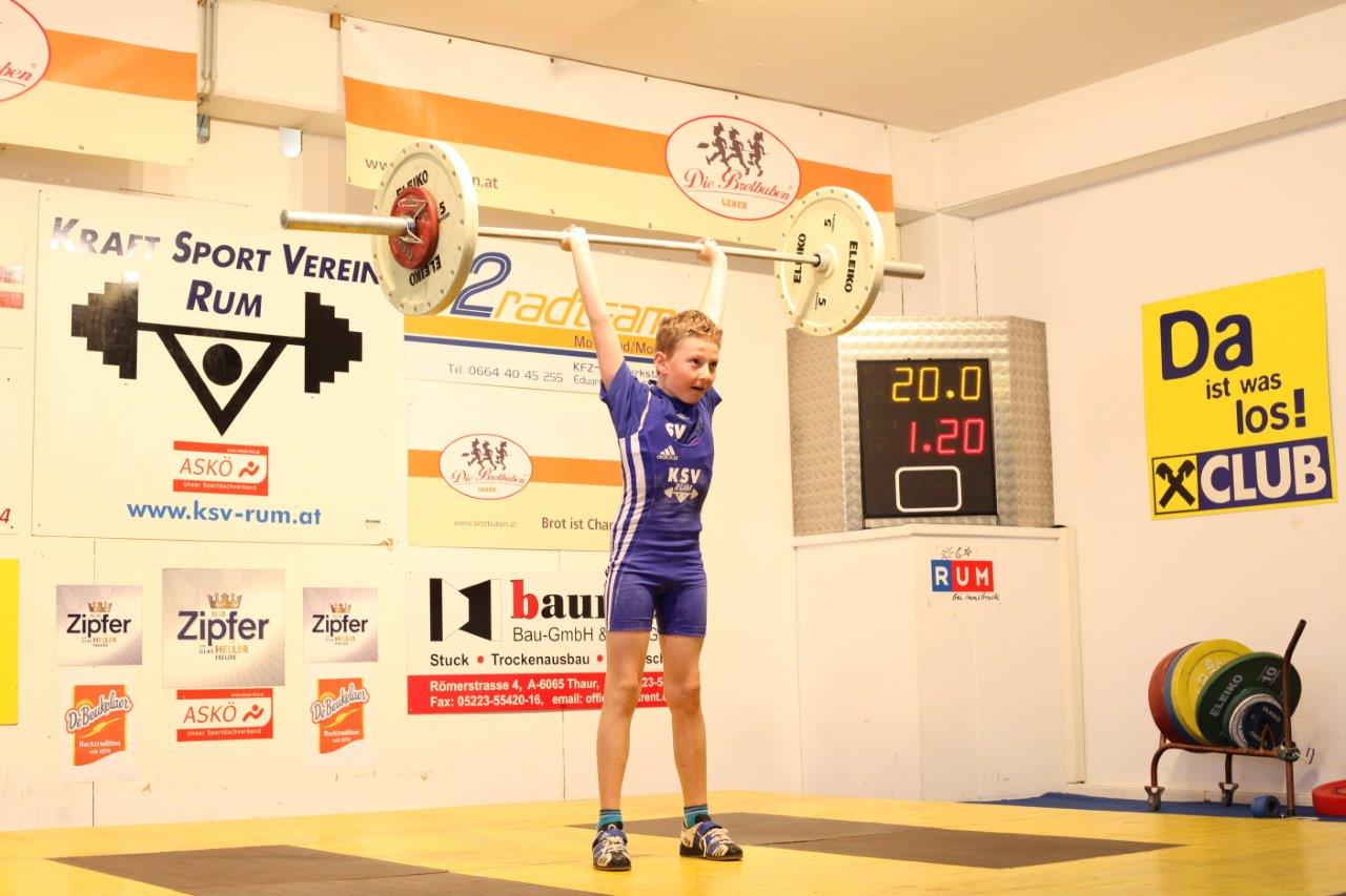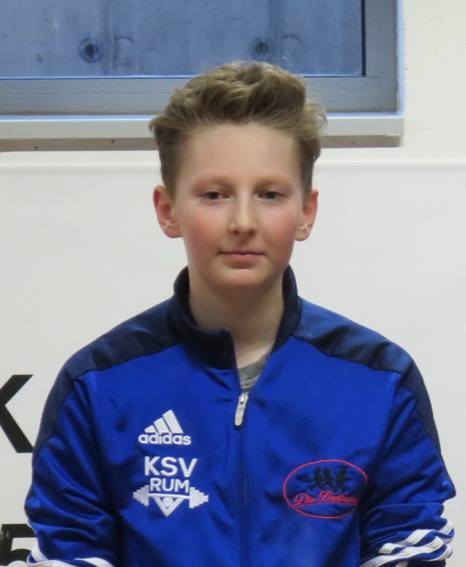 Wohnort - Rum geb. am 02.06.2005 Klasse bis 55 kg Aktiv seit 2014 Florian trainiert seit Juni 2014 beim KSV-RUM sportliche Erfolge 2015: 2. Platz - österr. U 11 Meisterschaft im Gewichtheben und im Mehrkampf 2./3./2. Platz im Tiroler NW-Cup - U11 2. Gesamtrang - Tiroler Schülercup 2015 - U11 3. Platz - Tiroler U11 - Mehrkampf sportliche Erfolge 2016: Intern. Athletic-Cup Tulln - Sieger U 11 und Sieger der Goldenen Rose der Stadt Tulln Sieg - Tiroler NW-Cup - U 11 - Runde 1 Tiroler U 11 Meister - GH + Mehrkampf 3. Platz - Intern. Junior Battle Lochen ASKÖ-Bundesmeister - U 11 2. Platz - Intern- Stapfer-Turnier Ranshofen sportliche Erfolge 2017: 2. Platz - österr. U 13 Gewichtheben 2. Platz - österr. U 13 Mehrkampf Sieg beim Intern. Junior Battle Lochen - U12 Sieg beim Intern. Athletic-Cup Tulln - U13 Gesamtsieg Intern. Athletic-Cup Tulln 2. Platz - ASKÖ-BM - U 13 2. Platz - Intern. Stapfer-Turnier - Ranshofen Tiroler U 13 - Meister - Gewichtheben + MK 1. Platz - Tiroler NW-Cup Runde 1 sportliche Erfolge 2018: Österr. Vize-Meister U 15 - Gewichtheben Österr. Vize-Meister U 15 - Leichtathletik Tiroler U 13 Meister - Gewichtheben Tiroler U 13 Meister - Mehrkampf 1. Platz - Tiroler NW-Cup - Runde 1 3. Platz - Intern. Junior Battle Lochen 4. Platz - Intern. Stapfer-Turnier Ranshofen Gesamtsieger Tiroler NW-Cup 2018 1. Wettkampf: Klubmeisterschaft Dezember 2014 Reißen und Stoßen - Technik 1. richtiger Wettkampf - 28. Feber 2015 Reißen - 15 kg Stoßen - 20 kg Bestleistungen 2015: Reißen - 25 kg Stoßen - 30 kg Bestleistungen 2016: Reißen - 35 kg Stoßen - 40 kg Bestleistungen 2017: Reißen - 43 kg (Tiroler Schüler Rekord) Stoßen - 50 kg Bestleistungen 2018: Reißen - 44 kg (Tiroler Schüler Rekord -50kg) Reißen - 48 kg Stoßen - 58 kg | ||||||||||||||||||||||||||||||||||||||||||||||||||||||||||||||||||||||||||||||||||||||||||||||||||||