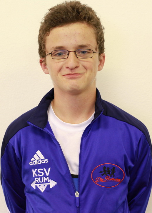 Wohnort - Hall in Tirol geb. am 23.03.1998 Klasse bis 105 kg Aktiv seit 2010 Lukas trainiert seit Juni beim KSV-RUM Sportliche Erfolge 2010: 3 Siege im Tiroler Schülercup Gesamtsieger Schülercup 2010 2011: 2. Platz - Tiroler Schülercup - Gesamt 2 x 3. Platz - Tiroler Schülercup 1 x 2. Platz - Tiroler Schülercup Tiroler - U 13 Meister im Mehrkampf 2. Platz - ASKÖ-BM Schüler 2012: Österr. U15 Meister - Kat. -50 kg 2. Platz - Tiroler Jugendcup ASKÖ-BM Jugend Tiroler U15-Meister 3. Platz Intern. Fulda Turnier 2013: Tiroler Meister - Kat. -56 kg Tiroler U15-Meister Kat. -50 kg Tiroler U20-Meister Kat. -56 kg 4. Platz - Staatsmeisterschaft -56 kg ASKÖ-Bundesmeister - Kat. -56 kg ASKÖ-BM - U15 - Kat.-56 kg 2. Platz - österr. U15 - Kat. -56 kg 2. Platz - österr. U20 - Kat. -56 kg 2014: ASKÖ-BM - U 17 - Kat. -62 kg Tiroler U17-Meister Kat. -62 kg 2. Platz - Tiroler Junioren, Kat.-69 kg 2. Platz - Gesamt-Tiroler Jugendcup U17 sportliche Erfolge 2015: österr. U 17 Meister - Kat. -85 kg Gesamtsieger Jugendcup - U 17 2. Platz - Tiroler U 17 - Kat. -77 kg 2. Platz - ASKÖ-BM - U17 / Kat.-77 kg 2. Platz - Tiroler NW-Cup - Runde 2 / 3 2. Platz - Tiroler U 20 Meisterschaft sportliche Erfolge 2016: Tiroler U 20 Meister - Kat. 94 kg 2. Platz - ASKÖ-BM - U20 - Kat.-94 kg Bestleistungen 2010: 1. Wettkampf - 25.09.2010 Reißen - 13 kg Stoßen - 17 kg Reißen - 16 kg Stoßen - 20 kg Bestleistungen 2011: Reißen - 23 kg Stoßen - 31 kg Bestleistungen 2012: Reißen - 35 kg Stoßen - 43 kg Bestleistungen 2013: Reißen - 46 kg Stoßen - 57 kg Bestleistungen 2014: Reißen - 52 kg Stoßen - 62 kg Bestleistungen 2015: Reißen - 60 kg Stoßen - 75 kg Bestleistungen 2016: Reißen - 66 kg Stoßen - 80 kg Bestleistungen 2017: Reißen - 71 kg Stoßen - 90 kg Bestleistungen 2018: Reißen - 74 kg Stoßen - 95 kg | |||||||||||||||||||||||||||||||||||||||||||||||||||||||||||||||||||||||||||||||||||||||||||||||||||||