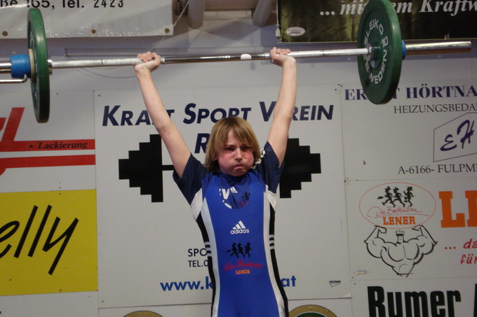 Insgesamt 7 Nachwuchsathleten im Alter zwischen 9 und 17 Jahren der Vereine KSV-RUM, SC Kufstein/Bad Häring und 1.AKI kämpften am 14.06.2007 in Bad Häring um die Titel in den Nachwuchsklassen. Die Zuschauer konnten viele neue persönliche Bestleistungen und zahlreiche technisch saubere Versuche der Athleten bejubeln. Mit 4 gewonnenen Titeln war der KSV-Rum wiederum der erfolgreichste Verein der Meisterschaft. In der Schülerklasse C (8 bis 9 Jahre) siegte Lukas Scharf vom 1.AKI. In der Jugend B Wertung (14 bis 15 Jahre) konnte der KSV-Rum gleich 3 Goldmedaillen einheimsen. Daniel Plank siegte in der Kat. - 50 kg und konnte mit 41 kg Reißen und 50 kg Stoßen seine Bestleistungen einstellen. In der Kat. -77 kg eroberte Gabriel Unsinn den Titel und stellte mit 138 kg im Zweikampf (64 kg Reißen und 74 kg Stoßen) neue Bestleistungen auf. Die Kat. -85 kg beherrschte Thomas Schweninger mit 135 kg im Zweikampf. 76 kg im Stoßen bedeuteten zudem eine neue Bestleistung. In der Jugend A Klasse (16 bis 17 Jahre) konnte Patrick Geiger vom KSV-Rum in der Kat. -69 kg seinen 1. Tiroler Meistertitel erkämpfen. Er überzeugte mit 48 kg im Reißen und der neuen Bestleistung im Stoßen von 63 kg. Der KSC-Bad Häring konnte durch Andreas und Franz Unterladstätter 2 Goldmedaillen erringen. | ||||||||||||||||||||||||||||||||||||||||||||||||||||||||||||||||||||||||||||||||||||||||||||||