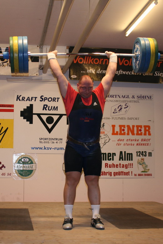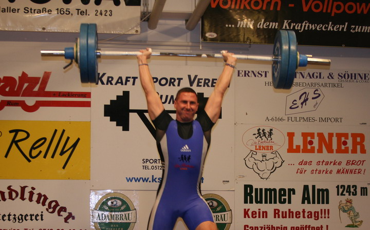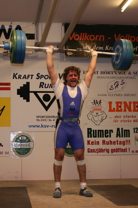 Eindrucksvoll konnte der KSV-RUM seine Vormachtstellung im Tiroler Gewichthebersport bei den kürzlich ausgetragenen Landesmeisterschaften untermauern. Die Rumer Athleten konnten insgesamt 4 der 7 begehrten Tiroler Meistertitel erkämpfen. Der 1. AKI eroberte drei Titel. In der Kat. - 62 kg siegte Franz Loipold (1. AKI) im Alleingang. (115 kg Zweikampf) Den Titel in der Kat. -69 kg sicherte sich Manfrd Heiss vom 1. AKI mit 173 kg. In der Kat. - 77 kg gab es einen harten Kampf zwischen den Rumern Werner Uran und Dietmar Gebhart. Schlussendlich konnte sich Werner Uran mit 89 kg Reißen und 111 kg Stoßen durchsetzen und eroberte den 1. Tiroler Meistertitel für den KSV-RUM. Dietmar Gebhart belgte mit 6 kg Rückstand den 2. Platz. Am 3. Platz klassierte sich der Rumer Patrick Geiger, der die neue Bestleistung von 116 kg im Zweikampf benötigte um den Bad Häringer Unterladstätter vom Treppchen zu stoßen. Werner Uran sicherte sich zusätzlich den Titel bei den Masters und Patrcik Geiger bei den Junioren. Die Kat. - 85 kg sah mit dem Rumer Martin Schneider einen ungefährdeten Sieger. Er erreichte 220 kg im Zweikampf (100 kg Reißen und 120 kg Stoßen). Die Silbermedaille ging an den Bad Häringer Markus Sammer der zugleich auch die Juniorenwertung gewann. Die Bronzemedaille eroberte der Rumer Josef Hölbling mit 167 kg im Zweikampf. Die Kat. - 94 kg sah einen Doppelsieg des 1. AKI. Markus Giacumuzzi (247 kg) siegte vor Benjamin Stockner (175 kg). Die Bronzemedaille ging an den Rumer Thomas Schweninger der mit neuer Bestleistung (152 kg) damit auch die Juniorenwertung vor seinem Vereinskollegen Gabriel Unsinn (148 kg) gewann, der ebenfalls eine neue Bestleistung aufstellen konnte. Seinen 3. Tiroler Meistertitel konnte Gerhard Mörth vom KSV-RUM nach einem harten Kampf mit 198 kg im Zweikampf in der Kat. -105 kg feiern. Er verwies Christian Scharf bei gleicher Leistung auf Grund des leichteren Körpergewichtes auf den Silberrang. Die Kat. + 105 kg war eine Angelegenheit für den Rumer Staatsmeister Markus Marksteiner. Mit 140 kg Reißen und 150 kg Stoßen holte er sich ungefährdet den Tiroler Meister-Titel und war mit 296,53 Sinclairpunkten der stärkste Athlet der Meisterschaft. | ||||||||||||||||||||||||||||||||||||||||||||||||||||||||||||||||||||||||||||||||||||||||||||||||