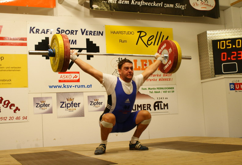 Am Freitag, 27.11.2009, fand in der Volksschule Rum die Klubmeisterschaft des KSV-RUM statt. Wie alle Jahre war der Wettkampf geprägt von spannenden Kämpfen der Athleten untereinander und insgesamt 8 neuen Bestleistungen. In der Klasse "Meister der Meister" waren auf Grund von Verletzungen und Erkrankungen nur 3 Athleten am Start. Thomas Hölzl wurde seiner Favoritenrolle gerecht und erkämpfte sich in Abwesenheit des Titelverteidigers Markus Marksteiner die Krone des "stärksten Rumers" mit 307 Punkten. Mit 124 kg Reißen, 156 kg Stoßen und 280 kg im Zweikampf konnte er jeweils neue Bestleistungen erzielen. Am 2. Platz klassierte sich Hermann Uran mit 266 Punkten. (105 kg Reißen - 122 kg Stoßen) Dritter wurde Werner Uran der auf 258 Punkte kam und mit 94 kg Reißen und 210 kg Zweikampf neue Jahresbestleistungen erzielte. In der Klubmeisterschaft siegte Thomas Schweninger unangefochten mit 213 Punkten. (78 kg Reißen und 106 kg Stoßen) Einen spannenden Kampf gab es um den 2. Platz zwischen David Bichler (163,68) und Daniel Plank (163,48). Hier konnte sich schlussendlich David Bichler mit dem hauchdünnen Vorsprung von 0,2 Punkten gegen den Favoriten durchsetzen. Hier sieht man wieder einmal eindrucksvoll, was man mit konsequenten Training erreichen kann. Mit 82 kg Stoßen und 142 kg im Zweikampf verbesserte David seine Bestleistungen und steigerte sich in diesem Jahr um insgesamt 55 kg. Dies war die größte Steigerung unter allen Nachwuchsathleten. Daniel Plank kam auf Grund seines Trainingsrückstandes nur auf 47 kg Reißen und 67 kg Stoßen. Den 4. Platz belegte der Debütant Andreas Plank mit 31 kg Reißen und 42 kg Stoßen. | |||||||||||||||||||||||||||||||||||||||||||||||||||||||||||||||||||||||||||||||||||||||||||||||||