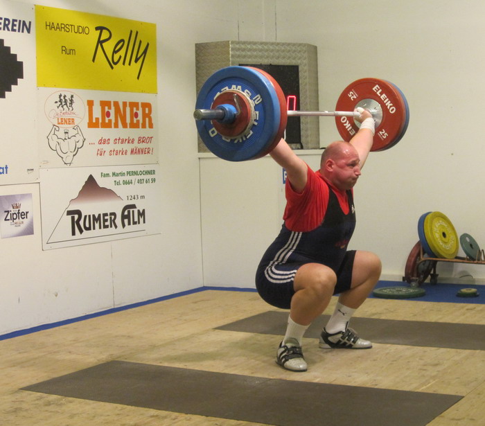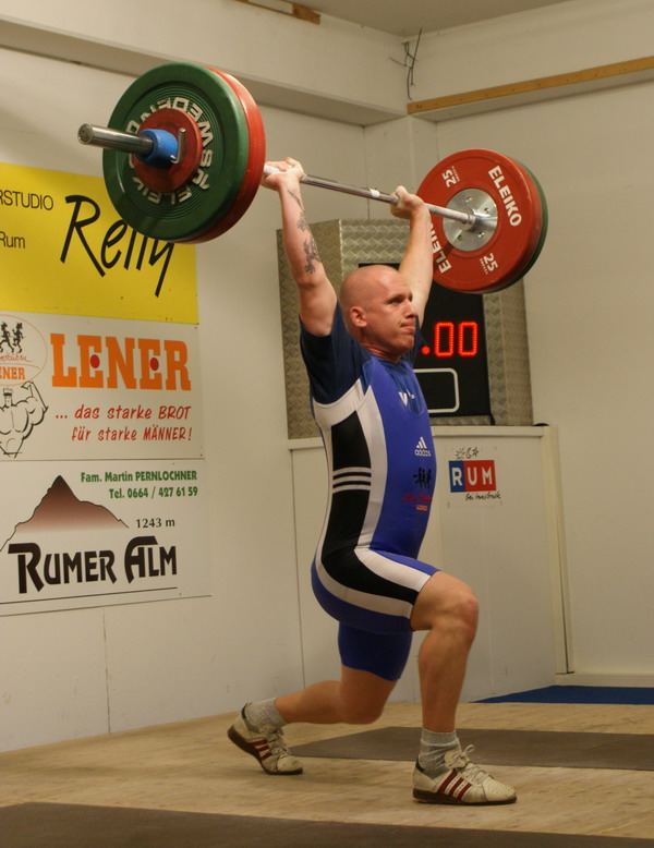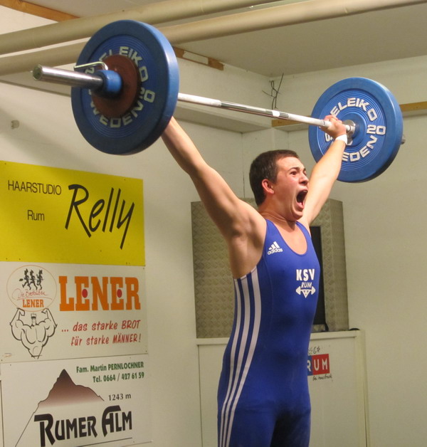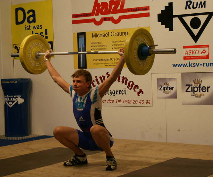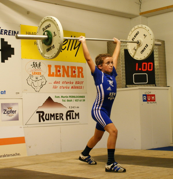 Markus Marksteiner ist der stärkste Rumer 2010. Er setzte sich in der Klasse "Meister der Meister" mit 274,86 Punkten an die Spitze. Für den Sieg genügten heuer 125 kg im Reißen und 140 kg im Stoßen. Zweiter wurde Hermann Uran der mit 107 kg Reißen und 117 kg Stoßen auf 263,69 Punkt kam. Gerhard Mörth konnte den Angriff der jungen Garde abwehren und klassierte sich mit 231,63 Punkten am 3. Platz. (90 kg Reißen und 115 kg Stoßen) Vierter wurde Thomas Schweninger der mit 193 kg im Zweikampf (83 kg Reißen - 110 kg Stoßen) eine neue Jahresbestleistung aufstellen konnte. (225,86 Punkte) Am 5. Platz klassierte sich Gabriel Unsinn. Er konnte erstmals die 100-kg-Schallmauer durchbrechen und schraubte seine Bestleistung auf 101 kg im Stoßen. Im Reißen kam er auf 85 kg. (216,99 Punkte) Die Klubmeisterschaft war eine Angelegenheit für Daniel Plank (55 kg Reißen - 70 kg Stoßen). Er siegte unangefochten mit 176,14 Punkten vor David Bichler (61 kg Reißen - 70 kg Stoßen) der auf 143,65 Punkte kam. In der Schülerklasse feierte der 12-jährige Lukas Walkam mit den neuen Bestleistungen von 16 kg Reißen und 20 kg Stoßen einen ungefährdeten Sieg. Zweiter wurde sein 10-jähriger Bruder Mario Walkam. Auch er konnte seine Bestleistung im Reißen auf 15 kg verbessern. Im Stoßen stellte er mit 16 kg seine Bestleistung ein. Den 3. Platz teilten sich die Doppelsieger der österr. Schüler-C-Meisterschaft Lucas und Felix Steiner. Sie bekamen für ihre Reißkniebeugen mit der 5-kg-Hantel jeweils die Höchstnote 10. Bei den liegestützen erreichten beide die geforderten 25 Wiederholungen. | ||||||||||||||||||||||||||||||||||||||||||||||||||||||||||||||||||||||||||||||||||||||||||||||||||||