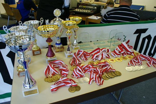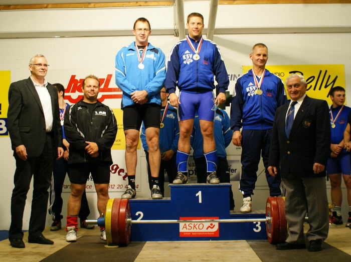 Eindrucksvoll konnte der KSV-RUM seine Vormachtstellung im Tiroler Gewichthebersport bei den kürzlich ausgetragenen Landesmeisterschaften untermauern. Die Rumer Athleten konnten insgesamt 4 der 7 begehrten Tiroler Meistertitel bei den Herren erkämpfen. Der KSC Bad Häring eroberte 3 Titel. Zusätzlich ging noch 1 Titel bei den Damen (Stefanie Scharf) an den 1. AKI Einen Premierensieg konnte der Bad Häringer Thomas Sammer in der Kat. - 62 kg mit 158 kg im Zweikampf feiern. Den Titel in der Kat. -69 kg sicherte sich Florian Leitner vom KSC Bad Häring mit 172 kg. Der Rumer Daniel Plank belegte mit 124 kg den 3. Platz was gleichzeitig den 2. Platz in der Juniorenwertung bedeutete. Den ersten Titel für den KSV-RUM sicherte Hannes Lamparter mit 169 kg im Zweikampf in der Kat. - 77 kg. Zusätzlich eroberte er den Titel bei den Masters (ab 35 Jahre) Die Kat. - 85 kg sah einen Dreifachsieg des KSV-RUM. Der Routinier Hermann Uran (215 kg) siegte in der Allgemeinen Klasse und bei den Masters. Dietmar Gebhart der auf 200 kg kam belegte den 2. Platz Patrick Geiger konnte mit neuer Bestleistung von 150 kg aufwarten und gewann neben der Bronzemedaille die Juniorenwertung. Die Kat. - 94 kg sah mit dem Bad Häringer Markus Sammer einen ungefährdeten Sieger. Er erreichte 249 kg im Zweikampf. Am 2. Platz klassierte sich sein Vereinskollege Clemens Ritzer (220 kg) vor Daniel Pischl vom 1. AKI (198 kg). Thomas Schweninger (185 kg) und Gabriel Unsinn (177 kg) belegten die Plätze 4. und 5. Damit gewannen sie Gold und Silber in der Juniorenwertung. Die Kat. -105 kg war eine Angelegenheit für den Vize-Staatsmeister Thomas Hölzl vom KSV-RUM. Er siegte ungefährdet mit der Tageshöchstmarke von 285 kg (125 kg Reißen und 160 kg Stoßen) und sicherte sich zudem den Sieg bei den Masters. 2. wurde Kurt Einberger vom KSC Bad Häring (217 kg). Den 3. Platz eroberte der Gerhard Mörth nach einem harten Kampf gegen den Christian Scharf. Er sicherte sich die Bronzemedaille bei gleicher Leistung (205 kg) auf Grund des leichteren Körpergewichtes. Tiroler Juniorenmeister wurde hier David Bichler mit 145 kg. Er verletzte sich beim letzten Stoßversuch leider an der Schulter. Markus Marksteiner gewann das Superschwergewicht mit 130 kg Reißen und 150 kg Stoßen und sicherte den 4. Titel für Rum. Gleichzeitig wurden im Rahmen dieser Meisterschaft die Tiroler Junioren und Masters-Titel vergeben. Dabei konnte der KSV-RUM weitere 7 GOLD- und 2 SILBERMEDAILLEN erkämpfen. | ||||||||||||||||||||||||||||||||||||||||||||||||||||||||||||||||||||||||||||||||||||||||||||||||||||