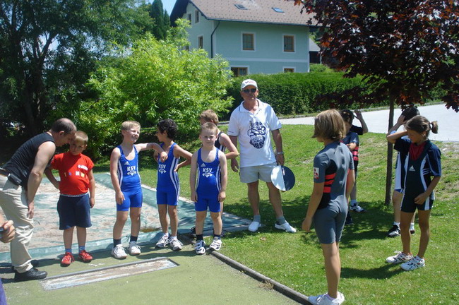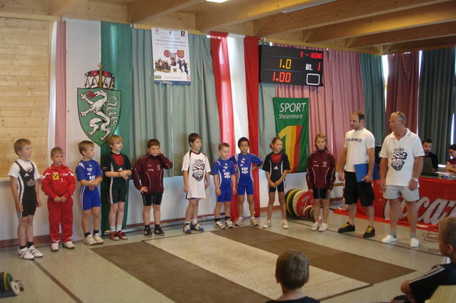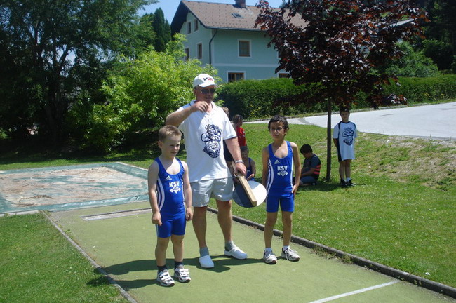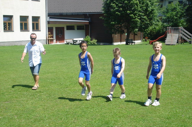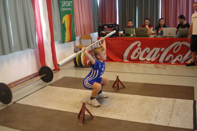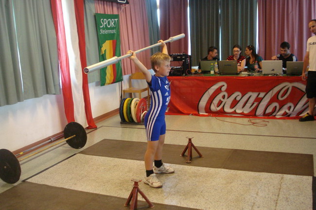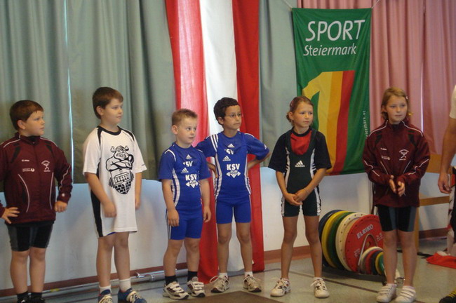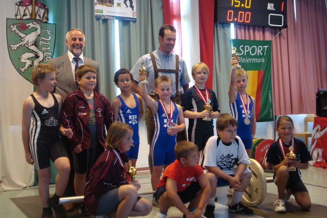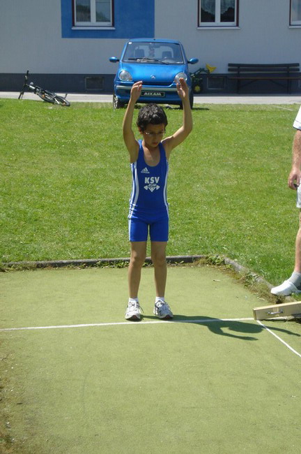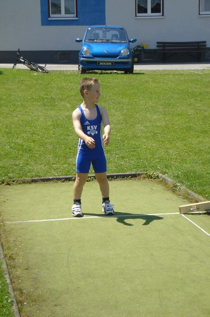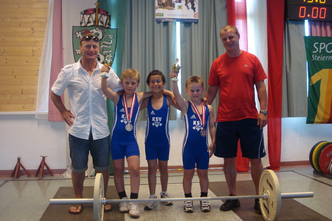 3 Starter - und die Plätze 1 - 2 - 4. Man kann also sagen dass die Ausbeute unserer 3 jüngsten KSV-Athleten optimal war. Bereits um 06.00 Uhr in der Früh erfolgte die Abfahrt in Richtung Öblarn. Mit an Bord die Betreuer Hans Steiner und Werner Uran. Für das leibliche Wohl und die mütterliche Unterstützung sorgte Marion Steiner. Lucas Steiner, Felix Steiner und Hasan Demir waren bei ihrem 1. Start bei einer österreichischen Meisterschaft am Anfang noch sichtlich nervös. Aber man sah gleich nach den Reißkniebeugen, dass sich das Training unter der Leitung von Harald Steiner, Martin Schneider und Werner Uran gelohnt hatte. Alle 3 Jung´s bekamen für ihre Versuche die Höchstmarke von 9,5 Punkten. Anschließend folgten in der Halle die Liegestütze - Lucas, Felix und Hasan kamen auf die Höchstzahl von 25. Leider wurden bei Hasan 3 auf Grund der unsauberen Ausführung gestrichen. Dann ging es auch schon ab zur Leichtathletik - der staatlich geprüfte Trainer Hans Steiner, der in der Vorbereitungsphase für das Leichtathletiktraining zuständig war, wärmte mit den Jung´s auf. Beim 30-Meter-Sprint aus der Bauchlage konnte man erkennen, dass unsere Mini-Herkulesse zu den schnellsten gehören. Lucas und Felix gelang mit 6,5 Sekunden die schnellste Zeit aller Teilnehmer. Dicht gefolgt von Hasan der nur eine Zehntel langsamer war. Beim 3-Hopp-Sprung fixierte Lucas Steiner dann schlussendlich seinen 1. österr. Meister-Titel. Mit 5,31 Metern sprang Lucas am weitesten aller Teilnehmer. Auch Felix mit 4,99 Metern und Hasan mit 4,83 metern konnten persönliche Bestweiten erzielen. Somit hieß es am Ende: 1. Platz - Lucas Steiner mit 37 Punkten, 2. Platz - Felix Steiner mit 35,5 Punkten und der undankbare aber ausgezeichnete 4. Platz für Hasan Demir mit 32,5 Punkten. Anschließend ging es wieder nach Hause. Am Thiersee wurde ein kurzer Badestop eingelegt, da die Busfahrt bei über 30 Grad ziemlich anstrengend war. Nach einer Pizzastärkung ging es ab nach Hause! Zum Schluss noch einmal ein Lob und Danke vom Trainer Werner an alle 3 Jung´s für ihr diszipliniertes und korrektes Auftreten bei der ersten nationalen Meisterschaft!!! | |||||||||||||||||||||||||||||||||||||||||||||||||||||||||||||||||||||||||||||||||||||||||||||||||||