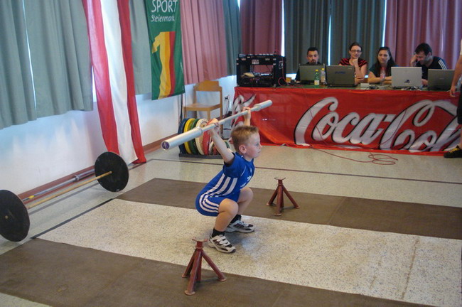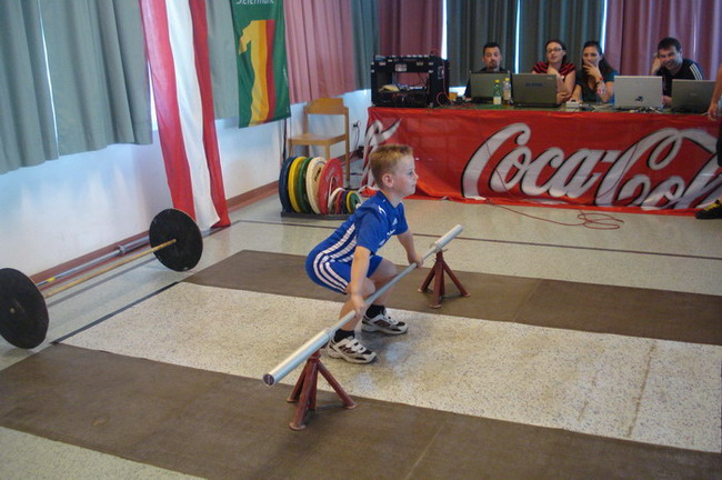 Insgesamt 16 Nachwuchsathleten im Alter zwischen 8 und 17 Jahren der Vereine KSV-RUM, KSC Bad Häring und 1.AKI kämpften am Wochenende in Rum um die Titel im Gewichtheben und dem athletischen Mehrkampf in den Nachwuchsklassen. Die Zuschauer konnten viele neue persönliche Bestleistungen, 3 neue Tiroler Rekorde und zahlreiche technisch saubere Versuche der Athleten bejubeln. Erfolgreichster Verein wurde der KSV-RUM der 4 Gold-, 2 Silber- und 1 Bronzemedaille gewinnen konnte. Der KSC Bad Häring und der 1. AKI konnten jeweils 2 Titel für sich verbuchen. In der Klasse Schüler-U-9 waren 7 Kinder am Start. Reißkniebeugen mit Technikwertung (leichtes Gewicht), 30-Meter-Sprint aus der Bauchlage, 3-Hopp-Sprünge und Liegestütz werden bei den Kleinsten bewertet. Und hier sah man, dass das vom KSV-RUM gestartete Schulprojekt "Kids in Motion" erste Früchte trägt. Obwohl alle Schüler erst seit kurzem trainieren zeigten sie ausgezeichnete Leistungen. So standen mit dem Sieger Kössler Benedikt und den Brüdern Steiner Lucas und Felix drei Rumer Debütanten auf dem Stockerl. Demir Hasan (KSV-RUM), Ruetz Andreas (1.AKI) und Kleinschmid Johannes (KSV-RUM) belegten die Plätze 4. bis 6. Die besten Einzelergebnisse erzielten Benedikt Kössler bei der Technikwertung - Reißkniebeugen (9,5 von 10 möglichen Punkten) und im 3-Hopp-Sprung mit 5,2 Metern. Lucas Steiner war im Sprint aus der Bauchlage mit 4,5 sec. der Schnellste. Bei den Liegestützen konnten alle die geforderten 25 Liegestütze erbringen. In der U-11 Wertung siegte Lukas Scharf vom 1. AKI mit 18 kg Reißen und 25 kg Stoßen. | |||||||||||||||||||||||||||||||||||||||||||||||||||||||||||||||||||||||||||||||||||||||||||||||||||