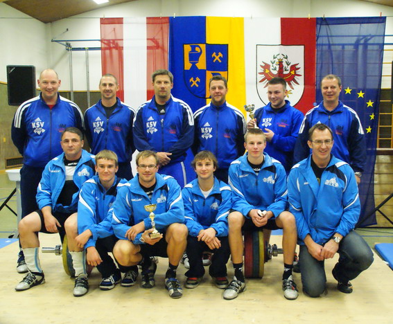 Mit 15,23 Punkten Vorsprung im Gepäck reiste der KSV-RUM zum zweiten Finale um den Titel des Regionalliga-Meisters nach Bad Häring. Und man kann es vorwegnehmen - der KSV-RUM verteidigte seinen Vorsprung in einem spannenden Wettkampf erfolgreich und kann sich REGIONALLIGA-MEISTER 2011 nennen. Da beide Mannschaften gleich stark einzuschätzen waren, entwickelte sich von Anfang an ein beinharter Kampf um jeden Kilo bzw. Punkt. Der KSC Bad Häring wehrte sich nach Leibeskräften und erzielte mit 1389,73 Punkten einen neuen Mannschaftsrekord. Der KSV-RUM hielt mit einer kompakten Mannschaftsleistung gekonnt dagegen. Mit insgesamt nur 6 Fehlversuchen kam der KSV-RUM auf 1390,32 Punkten und erzielte damit ebenfalls eine neue Jahresbestleistung. Schlussendlich siegte der KSV-RUM mit dem hauchdünnen Vorsprung von 0,59 Punkten und 2 : 1. Bereits nach dem Reißen lag unsere Mannschaft mit 4,38 Punkten in Führung. Das Stoßen konnte der KSC Bad Häring mit 3,79 Punkten für sich entscheiden. Wie knapp der Sieg ausfiel sieht man daran, dass nach ca. 1200 gehobenen Kilos ca. 0,4 kg über Sieg und Niederlage entschieden haben. Bester Athlet auf Rumer Seiten war Thomas Hölzl der mit 120 kg im Reißen und 150 kg im Stoßen auf 299,2 Punkte kam. Ausgezeichnet in Form zeigte sich Martin Schneider. Er kam mit 104 kg Reißen und 127 kg Stoßen auf 284,5 Punkten und trug damit wesentlich zum Sieg bei. Der Routinier Hermann Uran überzeugte mit 107 kg Reißen und 128 kg Stoßen. Diese Leistung bedeutete 276,2 Punkte. Markus Marksteiner erreichte mit 120 kg Reißen und 140 kg Stoßen 271,8 Punkte. Der Jugendathlet Thomas Schweninger machte seine Sache ausgezeichnet und erzeilte neue Bestleistungen. Mit 6 gültigen Versuchen kam er auf 87 kg Reißen und 114 kg Stoßen. Damit steuerte er wichtige 258,6 Punkte zum Titelgewinn bei. Bester Athlet auf Bad Häringer Seite war Markus Sammer der mit 124 kg Reißen und 145 kg Stoßen auf 311,9 Punkte kam. Somit belegen die beiden Tiroler Vereine KSV-RUM und KSC Bad Häring die Plätze 1 und 2 in der Regionalliga West. Auf den weiteren Plätzen folgen dann die drei Mannschaften Lochen, Buchkirchen-Wels und Weng aus Oberösterreich, die vor Saisonbeginn eigentlich stärker eingeschätzt wurden. | |||||||||||||||||||||||||||||||||||||||||||||||||||||||||||||||||||||||||||||||||||||||||||||||||||