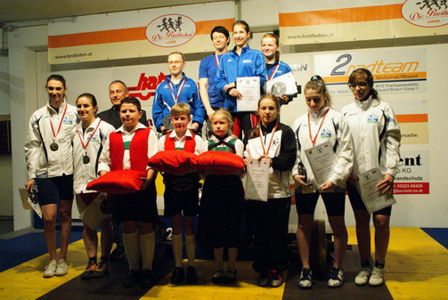 Ausgezeichnete Leistungen sahen die zahlreichen Zuschauer vom "schwachen Geschlecht" beim internationalen Alpencup in der Rumer Wettkampfhalle. Den Auftakt machte dabei die Lokalmatadorin Victoria Steiner. Trotz großer Nervosität konnte sie alle Versuche gültig in die Wertung bringen. Am Ende standen mit 29 kg Reißen und 40 kg Stoßen jeweils neue Bestleistungen und der Sieg in der Girls-Klasse auf ihrem Konto. In der leichten Gruppe bis 57 kg siegte Vittoria Carnevale-Pelino überlegen mit 220 Sinclair-Punkten. Dafür mußte sie 67 kg im Reißen und 80 kg im Stoßen zur Hochstrecke bringen. 220,09 Punkte bedeuteten auch die Tageshöchstmarke aller Athletinnen. Auf den Plätzen folgten ihre Landsfrauen Matilde Orlandoni (191,6 Punkte - 61 kg Reißen und 73 kg Stoßen) und Ilaria Riccardi (172,6 Punkte - 51 kg Reißen und 62 kg Stoßen). In der schweren Gruppe siegte die deutsche WM-Starterin Steffanie Metzger mit 216 Punkten. Mit 78 kg im Reißen und 97 kg im Stoßen brachte sie jeweils die größte Last zur Hochstrecke. Am 2. Platz folgte Tamara Voit die mit 210 Punkten (73 kg Reißen und 85 kg Stoßen) nur knapp hinter ihrer Landsfrau blieb. Am 3. Platz folgte dann Jaqueline Schroll mit 195 Punkten (65 kg Reißen / 77 kg Stoßen) Den Länderkampf Bayern gegen Lombardei konnten die deutschen Heberinnen mit 770 Punkten für sich entscheiden. Die Heberinnen der Lombardei kamen ihnen jedoch mit 746 Punkten sehr nahe. | |||||||||||||||||||||||||||||||||||||||||||||||||||||||||||||||||||||||||||||||||||||||||||||||||||||