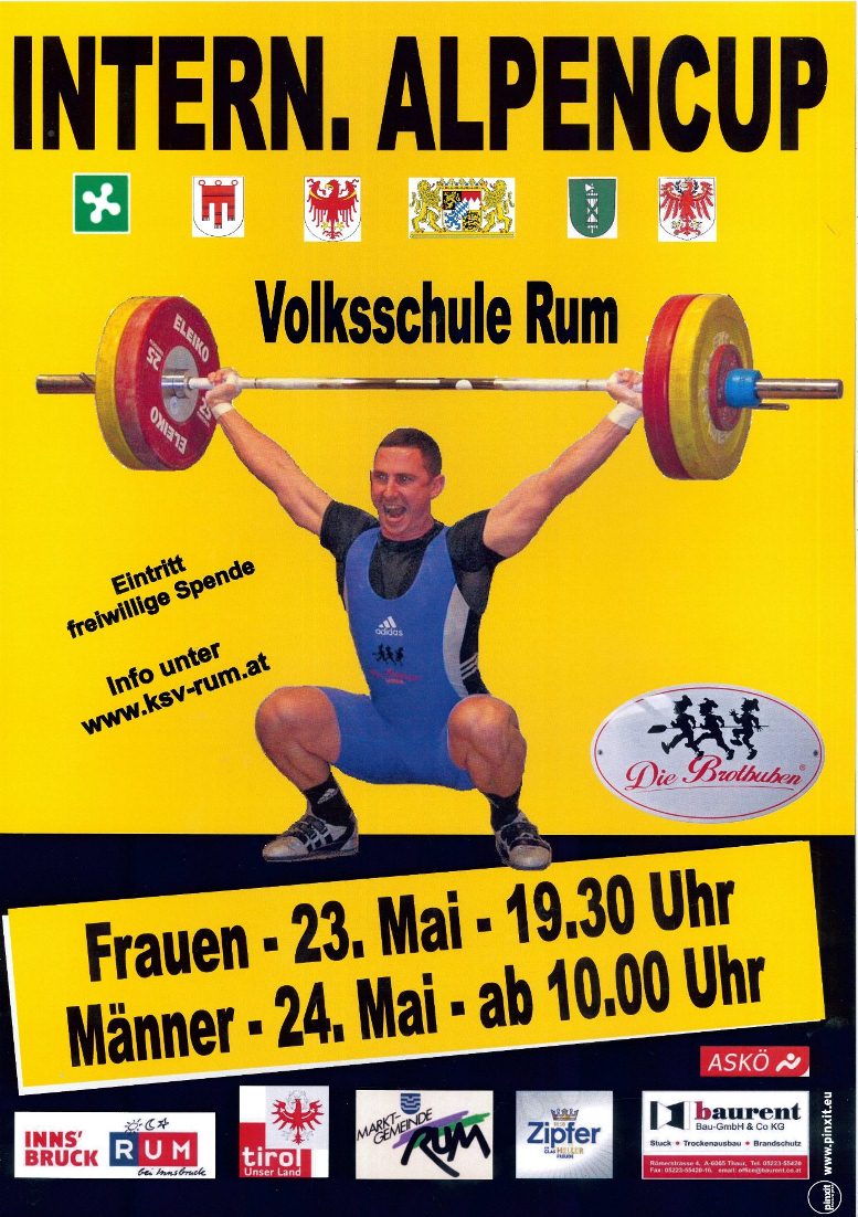 Starke Leistungen sahen die Zuschauer beim 30. Internationalen Alpencup in Rum. Das bewährte Team des KSV-RUM stellte wieder eine Veranstaltung auf die Beine, die bei den Teilnehmern keine Wünsche offen ließ. Top-Verpflegung im Außenbereich für die zahlreichen Zuschauer und Teilnehmer, Aufwärmtreppen im Freien bei sonnigem Wetter, Musikuntermalung zwischen den Versuchen, , Medaillenübergabe von unserem Nachwuchs in Tracht, die Nationalhymnen für die Sieger und als krönender Abschluss ein Bankett mit der Live-Musik "Jetlag". Zum sportlichen: Bayern siegte in der 1. Runde des 6. Durchganges mit 126 Punkten. Dicht gefolgt von der Lombardei die auf 119 Punkte kam. Einen spannenden Kampf gab es um den 3. Platz zwischen dem Gastgeberland Tirol und dem Kanton St. Gallen. Am Ende kamen beide Länder auf 95 Punkte. Schlussendlich setzte sich Tirol auf Grund der besseren Einzelplatzierungen durch und erkämpfte sich die Bronzemedaille. Den 5. Platz belegte Vorarlberg. Die bayrische Überlegenheit spiegelte sich in 5 Gewichtsklassensiegen sowie dem Dreifachsieg in der Sinclairwertung wieder. Der Tagesbeste Alexander Narr brachte mit 142 kg Reißen und 175 kg im Stoßen jeweils die höchsten Lasten zur Hochstrecke. Mit dieser Leistung kam er auf beachtliche 361,47 Punkte. Auf den Plätzen folgten Hans Brandhuber (121 kg Reißen - 150 kg Stoßen - 334 Punkte) sowie Hermann Voit (115 kg Reißen - 145 kg Stoßen - 330 Punkte). Bester Tiroler Athlet wurde Thomas Sammer in der Kategorie bis 85 kg mit der Silbermedaille. Er konnte 115 kg Reißen und 136 kg Stoßen. Damit kam er auf 312 Punkte - dies bedeutete in der Gesamt-wertung den 5. Platz. Bronze gab es für den Rumer Thomas Schweninger in der Kat. -105 kg. Er konnte 91 kg im Reißen und 115 kg im Stoßen zur Hochstrecke bringen. Eine besondere Bronzemedaille heimste das Rumer Urgestein Hermann Uran in der Kat. -94 kg mit 100 kg Reißen und 118 kg Stoßen ein. Besonders deshalb, da Hermann bereits 1984 bei der Premiere des Arge-Alp-Cup in Innsbruck an der Hantel stand. Die weiteren Rumer Starter waren: Lukas Walkam - 5. Platz - 104 kg (48 kg Reißen - 56 kg Stoßen) Samuel Maier - 7. Platz - 126 kg (56 kg Reißen - 70 kg Stoßen) - neue Bestleistungen Gerhard Mörth - 5. Platz - 197 kg (87 kg Reißen - 110 kg Stoßen) |