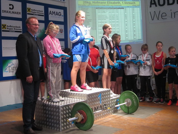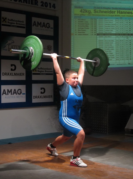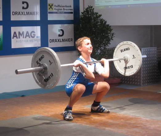 Dass die Sommerferien sehr gut zur Vorbereitung auf die 2. Saisonhälfte genutzt wurden zeigten die Leistungen unserer Schülerathleten beim international sehr stark besetzten 21. Stapfer Turnier in Ranshofen. Die Wertung erfolgte dabei nach Jahrgängen in der Sinclair-Punkte-Wertung. Den Beginn machte Victoria Steiner - Jahrgang 2003. Victoria dominierte nach Belieben, siegte mit 124 Punkten und steigerte sich um unglaubliche 10 kg im Zweikampf. Mit 35 kg und 37 kg Reißen - 44 kg im Stoßen und 78 kg und 81 kg im Zweikampf erzielte Victoria dabei 5 neue Tiroler Schüler-Rekorde in der Kategorie -53 kg. Zudem bedeuten die 37 kg auch einen neuen U-15-Rekord. Um nichts nach stand dann Christoph Uran (Jahrgang 2001) Nach "Abkochen" von 60 dag - das eine neue Erfahrung für Christoph darstellte - ging er voll motiviert in den Wettkampf. Der Lohn waren schlussendlich 4 neue Tiroler Schüler Rekorde in der Kat. -38 kg. Mit 34 kg Reißen - 43 kg Stoßen sowie 75 kg und 77 kg im Zweikampf überbot er die 7 Jahre alten Rekorde. Mit ausgezeichneten 172 Punkten klassierte sich Christoph am 7. Platz unter 16 Teilnehmern. Johannes Lamparter klassierte sich unmittelbar hinter ihm am 8. Platz. Mit 30 kg Reißen - 33 kg Stoßen - und 63 kg im Zweikampf konnte er seine Bestleistungen verbessern und erreichte damit gute 159 Punkte. Maximilian Uran (Jahrgang 2004) konnte mit 6 gültigen Versuchen seine Bestleistungen auf 20 kg Reißen und 25 kg Stoßen erhöhen. Der Lohn dafür war der 5. Platz. In der Jahrgangsklasse 2003 kam Hannes Schneider mit neuen Bestleistungen von 33 kg Reißen und 42 kg Stoßen auf den guten 7. Platz. Am Samstag waren dann die "älteren" an der Stange. Lukas Walkam (1998) brachte solide 47 kg Reißen und 57 kg Stoßen in die Wertung. Das reichte zum 8. Platz. Mathias Hölbling (Jahrgang 1992) eroberte mit der neuen Bestleistung von 171 kg (76 kg Reißen / 95 kg Stoßen) die Silbermedaille. Im Stoßen konnte er die Anfangslast von 95 kg erst im 3. Versuch zur Hochstrecke bringen. Thomas Schweninger (Jahrgang 1994) erreichte mit 200 kg im Zweikampf ebenfalls den 2. Platz. | ||||||||||||||||||||||||||||||||||||||||||||||||||||||||||||||||||||||||||||||||||||||||||||||||||||