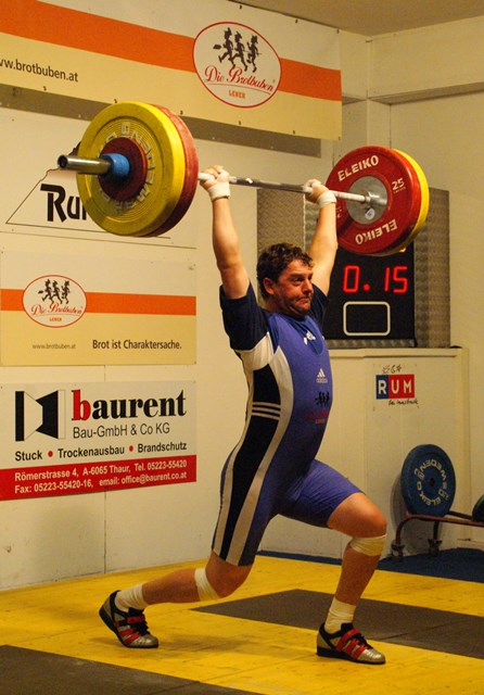 In der 2. Runde der Nationalliga West konnte der KSV-RUM vor ca. 100 begeisterten Zuschauern mit einem deutlichen 3 : 0 über die Wettkampfgemeinschaft 1.AKI / Dornbirn seinen ersten Sieg verbuchen. Die Wettkampfgemeinschaft 1.AKI / USC Dornbirn wehrte sich zwar nach Leibeskräften, konnte aber die deutliche Niederlage nicht verhindern. Nach dem Reißen lagen die Rumer Athleten bereits mit 81 Punkten in Führung. Der Vorsprung wurde beim Stoßen souverän verwaltet und schlussendlich noch einmal um 50 Punkte ausgebaut. Der KSV-RUM erzielte 1271 Sinclair-Punkte und siegte mit einem Vorsprung von 130 Punkten. Punktebester Athlet des Wettkampfes wurde Thomas Hölzl. Er erzielte mit 115 kg im Reißen und 145 kg im Stoßen insgesamt 293,6 Punkte. Hermann Uran war mit 261 Punkten der zweitbeste Mann auf Rumer Seite. Seine solide Zweikampfleistung von 222 kg wertete er mit der neuen Jahresbestleistung von 107 kg im Reißen auf. . Dicht dahinter folgte Martin Schneider der auf gute 258 Punkte kam. (95 kg Reißen und 115 kg Stoßen) Thomas Schweninger trumpfte im Reißen mit der neuen Bestleistung von 93 kg auf. Im Stoßen folgten dann gute 117 kg. Dies bedeutete 236 Punkte für die Mannschaftsleistung. Wolfgang Plank komplettierte die Siegerleistung mit 223 Puinkten. (80 kg Reißen - 97 kg Stoßen) Auf Seiten der WKG war Innsbrucker Martin Leitner mit 242 Punkten (97 kg Reißen - 122 kg Stoßen) der beste Mann. Mathias Hölbling, der außer Konkurrenz startete konnte mit 86 kg im Stoßen eine neue Bestleistung erzielen. Im Reißen kam er auf 64 kg und verpasste seine Bestleistung nur um 1. Kg. | ||||||||||||||||||||||||||||||||||||||||||||||||||||||||||||||||||||||||||||||||||||||||||||||||||||