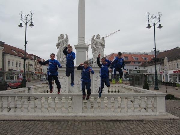 Überaus erfolgreich kehrten unsere 5 SchülerInnen vom Internationalen Athletikcup (Gewichtheben und athletischer Mehrkampf - Sprint / 3-Sprung / Kugelschockwurf) aus Tulln - von Maxi liebevoll "Tulpen" genannt - zurück. Erfreulich war vor allem, dass Victoria und alle 4 Jung´s im Gewichtheben mit hohen Technikpunkten glänzen konnten und trotzdem noch neue Bestleistungen aufstellen konnten. Bereits am Samstag machten sich Hermann und Werner Uran mit den 4 Jung´s im Bus auf den Weg um sich am Abend mit den Steiner´s (Victoria, Sabine und Haggi) in Tulln zu vereinigen. Zur Stärkung gab es dann die versprochene Pizza. Am Morgen folgte dann ein deftiges Frühstück im Segafredo - natürlich mit Rührei und Schinken für Hannes und Jo - damit war die Kraft für den Wettkampf getankt.... In der U11 der Mädchen überraschte Victoria Steiner die gesamte Konkurrenz mit 24 kg Reißen und der neuen Bestleistung von 35 kg Stoßen. Mit guten Leistungen in der Leichtathletik kam Victoria auf 438 Punkte und sicherte sich so den Sieg in ihrer Altersklasse. Die zweitbeste Punkteleistung aller weiblichen Schülerinnen ergab in der Endabrechnung den Gewinn der "Silbernen Rose der Stadt Tulln"! - Bravo Victoria!!! In der U11-Klasse der Burschen bestritten Hannes Schneider und Maximilian Uran ihre internationale Feuertaufe und verbesserten dabei gleich ihre Bestleistungen. Beim Wettkampf sah man einmal einen anderen Hannes - absolut angespannt und sehr nervös ... man konnte fast glauben man hatte eine anderen Hannes mit!! Hannes verbesserte aber trotzdem seine Höchstmarke auf 22 kg im Reißen und stellte sie mit 28 kg im Stoßen ein. Damit belegte er in der Endwertung mit 403 Punkten den 6. Platz. Den 8. Platz belegte der ebenfalls sehr nervöse Maximilian Uran der mit 14 kg Reißen und 20 kg Stoßen auch neue Bestleistungen erzielen konnte und auf 378 Punkte kam. In der U13-Klasse konnte Christoph Uran mit ausgezeichneten Leistungen überzeugen. Schlussendlich belegte er trotz neuer Bestleistungen (25 kg Reißen und 34 kg Stoßen) mit 529,06 Punkten den undankbaren 4. Platz. Im Dreisprung war Christoph mit 6,85 Meter der Weiteste aller Schüler. 3,66 sec bedeuteten die zweitschnellste Zeit aller Teilnehmer. Bitter war vor allem, dass Christoph den 3. Platz nur um 0,09 Punkte und den 2. Platz auch nur um 2 Punkte verfehlte. Den 7. Platz belegte hier Johannes Lamparter, der auf gute 493 Punkte kam. Mit 24 kg Reißen und 31 kg Stoßen verbesserte er seine Bestleistungen um ganze 5 kg. Auf Grund der ausgezeichneten Einzelleistungen der Rumer AthletInnen reichte es in der Mannschaftswertung zum überraschenden 2. Platz hinter dem HSV Langenlebarn und noch vor der slowakischen Mannschaft aus Trencin. Der Lohn war die "Silberne Rose der Stadt Tulln". Abschließend gab es noch eine Stärkung im Mc Donalds und dann ging´s ab nach Hause - 5 Stunden Busfahrt mit sehr viel Lärm einigen Streitereien und was halt alles noch so dazugehört bei 5 SportfreundInnen.... Aber alles in allem - den Jung´s und Mäedels hat es volle taugt und wie sie so schön sagen - es war einfach geil!! | ||||||||||||||||||||||||||||||||||||||||||||||||||||||||||||||||||||||||||||||||||||||||||||||||||||