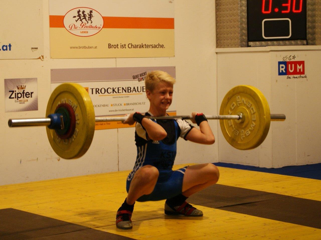 Eindrucksvoll konnten die KSV-Yougsters ihre Vormachtstellung in Tirol mit allen 6 möglichen Gesamtsiegen beim Nachwuchscup 2015 unter Beweis stellen. Die Jagd nach dem Sieg und höheren Bestleistungen gipfelte schlussendlich in 16 neuen Tiroler Nachwuchsrekorden durch Victoria Steiner (13), Christoph Uran (2) und Anna Lamparter (1) sowie 6 Einzelsiegen in der 3. Runde des Nachwuchscup´s. Zudem erzielte Victoria Steiner mit 590,3 Punkten im Mehrkampf eine österreichische Jahresbestleistung und steigerte ihr Rekordkonto auf derzeit 128 Tiroler Nachwuchsrekorde. In der U11 Klasse der Mädchen siegte Anna Lamparter eindrucksvoll in der Einzel- und Gesamtwertung. Mit 30 kg Reißen konnte Anna zudem ihren eigenen Tiroler Schülerrekord in der Kat. -44 kg verbessern. Ebenfalls wieder in Rekordlaune zeigte sich Victoria Steiner in der U-13-Schüler-Klasse. Victoria siegte im Mehrkampf mit der Tageshöchstmarke von 590,3 Punkten und erzielte insgesamt 13 neue Tiroler Nachwuchsrekorde von der Schüler- bis zur Unter-23-Klasse in der Kategorie -63 kg. Mit 53 kg Reißen und 67 kg Stoßen kam sie erstmals auf 120 kg im Zweikampf. Der Gesamtsieg war ihr damit natürlich nicht zu nehmen. | |||||||||||||||||||||||||||||||||||||||||||||||||||||||||||||||||||||||||||||||||||||||||||||||||||