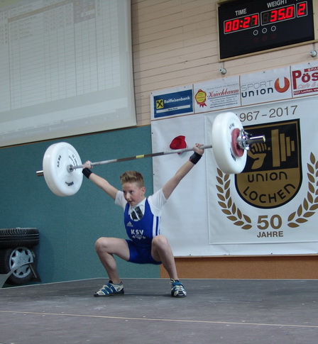 Florian Barth (U 13) lieferte einen sehenswerten Wettkampf und konnte sich über 2 x Silber im Gewichtheben (35 kg Reißen / 42 kg Stoßen) und Mehrkampf freuen. Bei seiner Bestleistung im Stoßen von 42 kg erhielt Florian die Höchstwertung für die technische Ausführung. Im 30-Meter-Sprint war Florian mit 4,99 sec. der Schnellste des gesamten Teilnehmerfeldes. Trotzdem musste er die Überlegenheit des Linzers Luca Modrey (570 Pkt) anerkennen. Maximilian Uran überzeugte in der U 13-Klasse der Burschen und konnte sich dort mit der neuen Zweikampfbestleistung von 79 kg auf dem 5. Platz klassieren. In der Mannschaftswertung belegten die KSV-Youngsters den 5. Platz. | ||||||||||||||||||||||||||||||||||||||||||||||||||||||||||||||||||||||||||||||||||||||||||||||||||||||