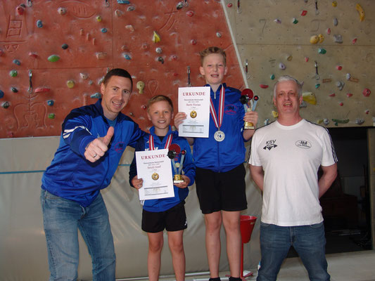 Ausgezeichnete Leistungen sahen die Zuschauer bei der 1. Runde im Tiroler Nachwuchscup am Wochenende in Innsbruck. Vor allem die Nachwuchsheber des KSV-RUM hatten die Winterpause genützt und waren optimal vorbereitet. Allen voran Florian Barth. Florian konnte mit 579 Punkten die Tageshöchstmarke aller Teilnehmer im athletischen Mehrkampf erzielen. Im 30-Meter-Sprint (4,56 sec) - 3-Hopp-Sprung (7,02 m) und Kugel-Schockwurf (9,90 m) stellte er jeweils die Bestmarke auf. Aber damit nicht genug. Auch im Gewichtheben konnte er mit 44 kg Reißen einen neuen Tiroler U-13-Rekord in der Kategorie bis 50 kg erzielen. Im Stoßen legte er dann noch eine persönliche Bestmarke mit 51 kg nach. Andreas Schlechter (KSC Bad Häring) wurde mit 379 Punkten Zweiter. | |||||||||||||||||||||||||||||||||||||||||||||||||||||||||||||||||||||||||||||||||||||||||||||||||||