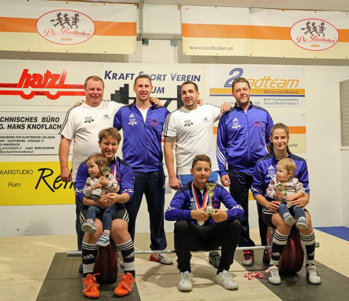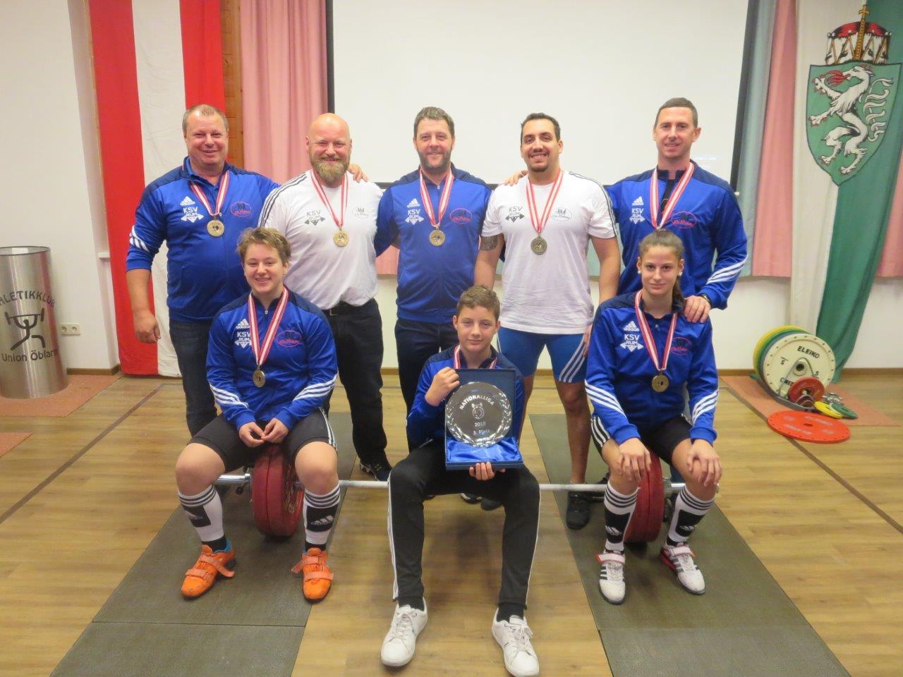 Mit einem glücklichen 3 : 1 Auswärtssieg beim AK Union Öblarn sicherte sich unsere Mannschaft den 3. Platz in der Nationalliga 2018. Da Martin Schneider verletzungsbedingt pausieren musste, sollte sich nach der Papierform ein außerst knapper Wettkampf entwickeln, der nur durch die Fehlversuche entschieden wird. Aber bereits nach den ersten 3 Versuchen war klar, dass es für unsere Mannschaft ein Spaziergang wird. Tanja Plank platzte mit 49 kg und somit war der Weg für einen ungefährdeten Sieg des KSV-RUM frei. Obwohl unsere Mannschaft "im Sicherheitsgang" agieren konnte, stellten wir mit Victoria Steiner die stärkste Athletin des Wettkampfes. Vici kam auf 280,5 Punkte (68 kg Reißen und 85 kg Stoßen) Die restlichen Leistungen unserer Mannschaft: Anna Lamparter - 253,0 Punkte (56 kg Reißen - 70 kg Stoßen) Hermann Uran - 230,0 Punkte (95 kg Reißen - 105 kg Stoßen) Dominik Khaschabi - 204,6 Punkte (75 kg Reißen - 100 kg Stoßen) Maximilian Uran - 135 Punkte (45 kg Reißen - 55 kg Stoßen) | ||||||||||||||||||||||||||||||||||||||||||||||||||||||||||||||||||||||||||||||||||||||||||||||||||||||