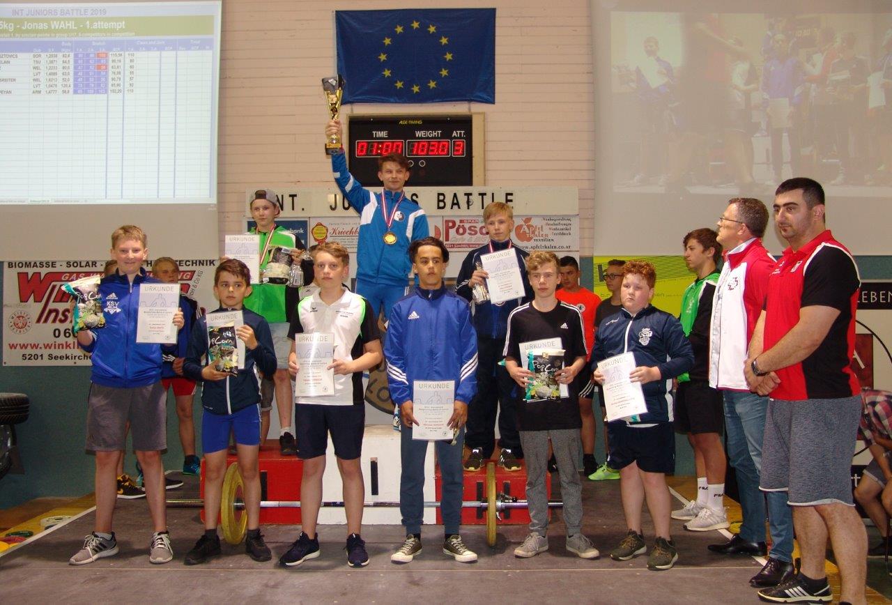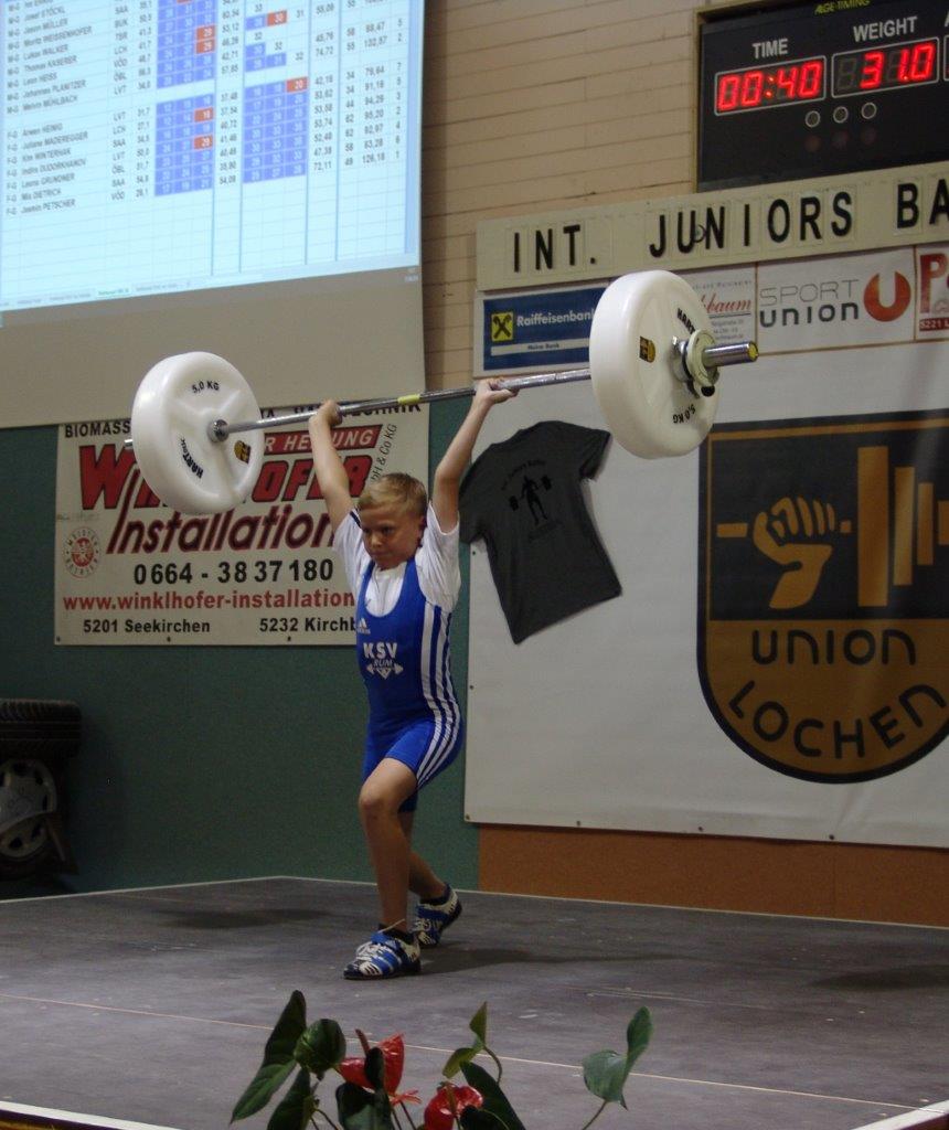 Eines der größten internationalen Nachwuchsturniere fand vergangenes Wochenende beim USV Lochen (OÖ) statt. Dabei konnten die Rumer Nachwuchshoffnungen Stöckl Josef und Barth Florian sich super in Szene setzen. Josef startete in der U11-Wertung und konnte fünf Versuche gültig zur Hochstrecke bringen. Mit 124,62 Sinclairpunkten schaffte er hinter drei deutschen Athleten den ausgezeichneten vierten Platz (22 kg / 31 kg / 53 kg ZWK). Einen starken Wettkampf absolvierte auch Barth Florian. Der Jugendliche (Klasse U15) zeigte sechs tolle Versuche und konnte sowohl im Reißen (53 kg) als auch im Stoßen (63 kg) und natürlich im Zweikampf (116 kg) neue Bestleistungen erzielen. In der Endabrechnung wurde es mit nur 3,12 Punkten Rückstand auf dem Sieger der starke vierte Platz! Mit diesem tollen Auftreten können die Rumer Jungs super zufrieden und stolz auf ihre Platzierungen sein. Vielen Dank auch an das Betreuer-Team Huber Manfred - Weber Richi - Stöckl Wolfgang!! |