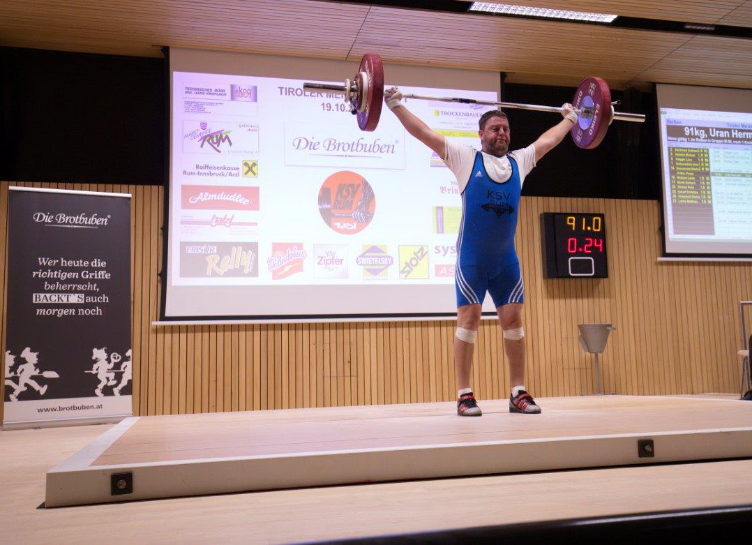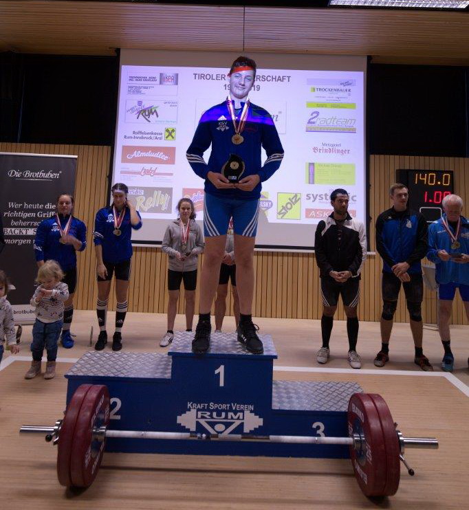 Die Tiroler Meister der Allgemeinen Klasse - Frauen: Kat. -49 kg: Ronja Holzknecht (SC Kroftlaggl) - 65 kg ZWK Kat. -64 kg: Anna Lamparter (KSV-RUM) - 129 kg ZWK Kat. -76 kg: Victoria Steiner (KSV-RUM) - 170 kg ZWK Männer: Kat. -67 kg: Hans Kreisser (Bad Häring) - 110 kg Kat. -73 kg: Maximilian Uran (KSV-RUM) - 131 kg Kat. -81 kg: Armin Ritzer (Bad Häring) - 245 kg Kat. -89 kg: Luca Volgger (SC Kroftlaggl) - 216 kg Kat. -96 kg: Hermann Uran (KSV-RUM) - 208 kg Kat. -102 kg: Markus Giacomuzzi (SC Kroftlaggl) - 209 kg Kat. -109 kg: Alexandros Nathanailidis (KSV-RUM) - 241 kg Kat. +109 kg: Michael Habetin (1. AKI) - 238 kg | |||||||||||||||||||||||||||||||||||||||||||||||||||||||||||||||||||||||||||||||||||||||||||||||||||||