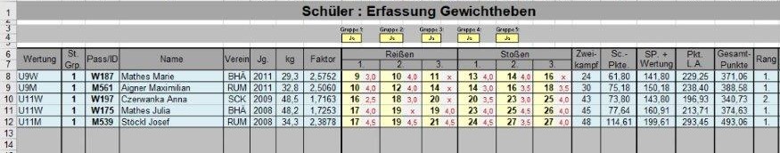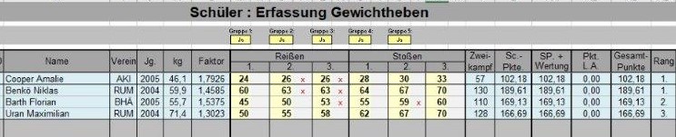 Unsere Jung´s konnten beim Schüler- und Jugendcup wieder überzeugen. Maxi und Josef siegten in ihren Klassen. Maxi konnte sogar seine Bestleistungen nach oben schrauben auf 12 kg Reißen und 18 kg Stoßen. Maxi (58 kg Reißen und 70 kg Stoßen) und Josef (60 kg Stoßen) konnten ebenfalls neue Bestleistungen erzielen. | ||||||||||||||||||||||||||||||||||||||||||||||||||||||||||||||||||||||||||||||||||||||||||||||||||||
