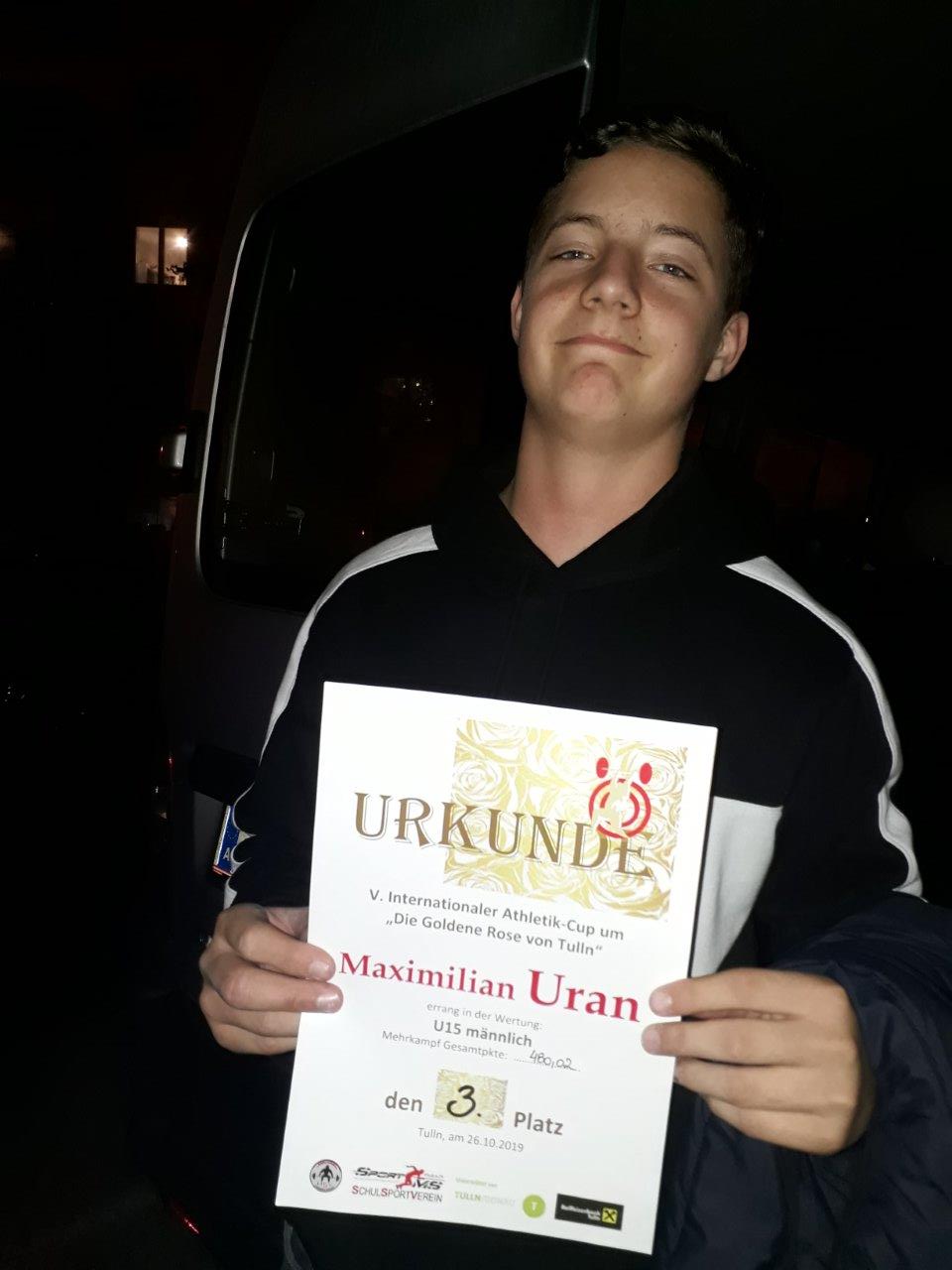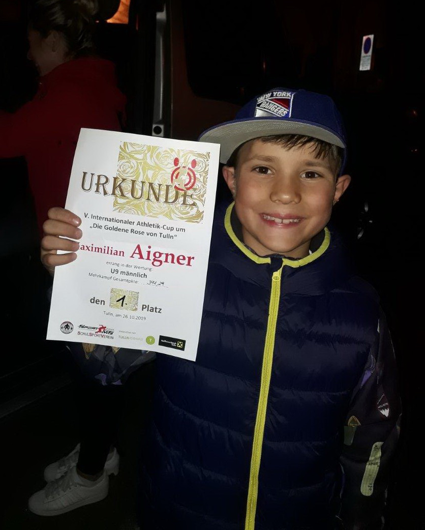 Eine Reise wert war für die KSV-Youngsters die Fahrt zum Internationalen Athletic Cup in Tulln. Die Wertung erfolgte im Mehrkampf mit Gewichtheben, 30-Meter-Sprint, 3-Hopp-Sprung und Kugel-Schockwurf. Hier zeigte sich wieder einmal dass sich das regelmäßige Leichtathletik-training auf der neuen Laufbahn im Sportzentrum auszahlt. Unserer Youngsters konnten 3 von 8 möglichen Siegen einfahren. Den Beginn machte unser Jüngster - Maximilian Aigner in der U-9-Klasse. Maxi überzeugte im Gewichtheben mit einer sauberen Technik und erhielt dafür als einziger Athlet des gesamten Starterfeldes für alle Versuche die Höchstnote. Damit konnte er sich bereits einen Vorsprung sichern den er in der Leichtathletik souverän verteidigte. Der Lohn war die Goldmedaille sowie der Gesamtsieg im österreichischen Schülercup der U-9-Klasse! Einen hart erkämpften Sieg verbuchte Josef Stöckl in der U-11-Klasse. Den Grundstein für die Goldmedaille legte Josef mit der neuen Bestleistung von 60 kg im Zweikampf (26 kg Reißen / 34 kg Stoßen. Nach der Leichtathletik blieben dann 5 Punkte Vorsprung auf die Verfolger übrig. Mit diesem Erfolg konnte Josef zudem die Silbermedaille im österreichischen Schülercup 2019 nach Rum holen! Den 3. Sieg für den KSV-RUM holte unsere A-Kader-Athletin Anna Lamparter in der U-15-Klasse. Mit 59 kg Reißen und 75 kg Stoßen zeigte Anna eine gute Leistung im Gewichtheben. In der Leichtathletik war Anna dann eine Klasse für sich und war in allen Disziplinen die Schnellste bzw. Weiteste bei den Mädchen. Maximilian Uran rundete den Erfolg mit einem 3. Platz in der U-15-Wertung ab. Maximilian konnte dabei vor allem in der Leichtathletik mit Bestmarken des gesamten Starterfeldes überzeugen. Auch wenn die Jung´s etwas enttäuscht waren da sie keine Rosen gewonnen haben..... so war es doch ein super Wettkampf und ein großer Erfolg für unsere Jung´s und Mädels!! Nächstes Jahr holen wir uns die Rosen!! | ||||||||||||||||||||||||||||||||||||||||||||||||||||||||||||||||||||||||||||||||||||||||||||||||||||
