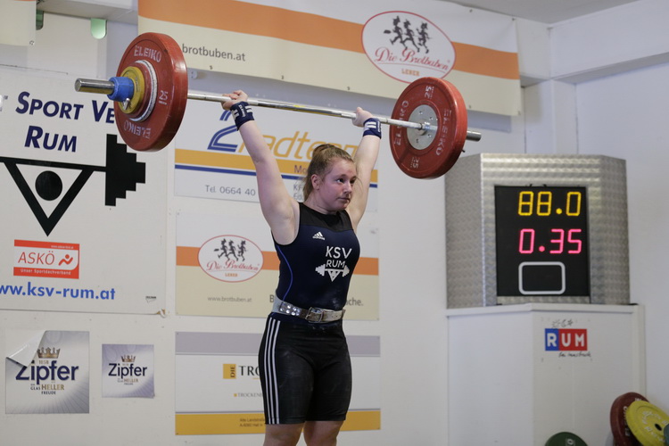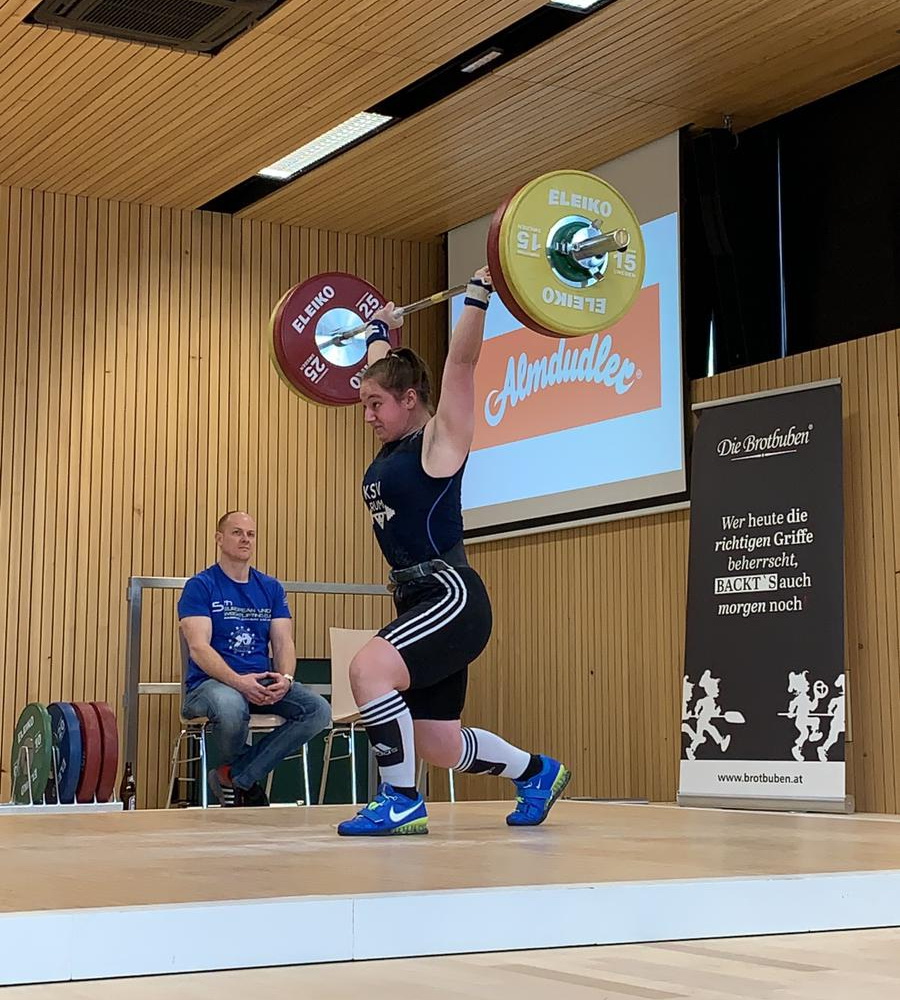 Sportliche Erfolge 2018: EUROPAMEISTERIN im Zweikampf - 161 kg EUROPAMEISTERIN im Reißen - 71 kg Vize-Europameisterin im Stoßen - 90 kg Staatsmeisterin - Zweikampf - Kat. -75 kg Staatsmeisterin - Reißen - Kat. 75 kg Vize-Staatsmeisterin - Stoßen - Kat. 75 kg 2. Platz - EU-Cup - U 15 in Innsbruck österr. U 15 - Meisterin -75 kg Tiroler Meisterin - U 15 - Kat. -75 kg Int. Alpencup-Siegerin - Kat. 69 kg ASKÖ-Bundesmeisterin 2018 - Kat. 75 kg ASKÖ-U-15- Meisterin 2015 Sieg - Intern. Stapfer-Turnier Ranshofen - JG 2003 Gesamtsiegerin Frauen - Intern. Stpfer-Turnier 2. Platz - Intern. Challenge 210 - Tramelan Bestleistungen 2018: Reißen - 77 kg - (Tiroler Rekord - 75 kg) Stoßen - 94 kg (Tiroler Rekord - 69 kg) Stoßen - 98 kg (Tiroler Rekord -75 kg) Zweikampf - 167 kg (Tiroler Rekord -69 kg) Zweikampf - 175 kg (Tiroler Rekord -75 kg) | |||||||||||||||||||||||||||||||||||||||||||||||||||||||||||||||||||||||||||||||||||||||||||||||||||