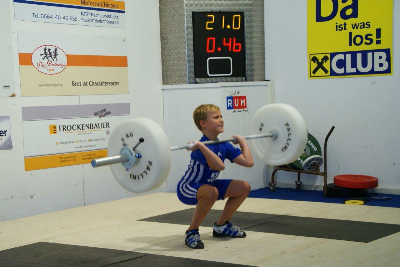 Wohnort - Rum geb. am 14.11.2008 Klasse bis 40 kg (38 kg Körpergewicht) Josef trainiert seit Dezember 2017 beim KSV-RUM sportliche Erfolge 2019: Österr. Schülermeister U 11 - Gewichtheben Österr. Schülermeister U 11 - Mehrkampf Sieger Intern. Athletic-Cup Tulln - U11 Tiroler Meister U 11 - Gewichtheben Tiroler Meister U 11 - Mehrkampf sportliche Erfolge 2018: Sieg - Intern. Stapfer-Turnier Ranshofen - JG 2008 Gesamtsieger Tiroler NW-Cup 2018 - U11 3. Platz - Österr. U 11 - Gewichtheben 3. Platz - Österr. U 11 - Mehrkampf Tiroler U 11 Meister - Gewichtheben Tiroler U 11 Meister - Mehrkampf Sieg im Tiroler NW-Cup - U11 - Runde 1 / 2 / 3 1. Wettkampf am 24.02.2018 Reißen - 11 kg Stoßen - 14 kg Bestleistungen 2018: Reißen - 20 kg Stoßen - 27 kg Bestleistungen 2019: Reißen - 27 kg Stoßen - 35 kg Bestleistungen 2020: Reißen - 27 kg / 28 kg Stoßen - 36 kg | |||||||||||||||||||||||||||||||||||||||||||||||||||||||||||||||||||||||||||||||||||||||||||||||||||||