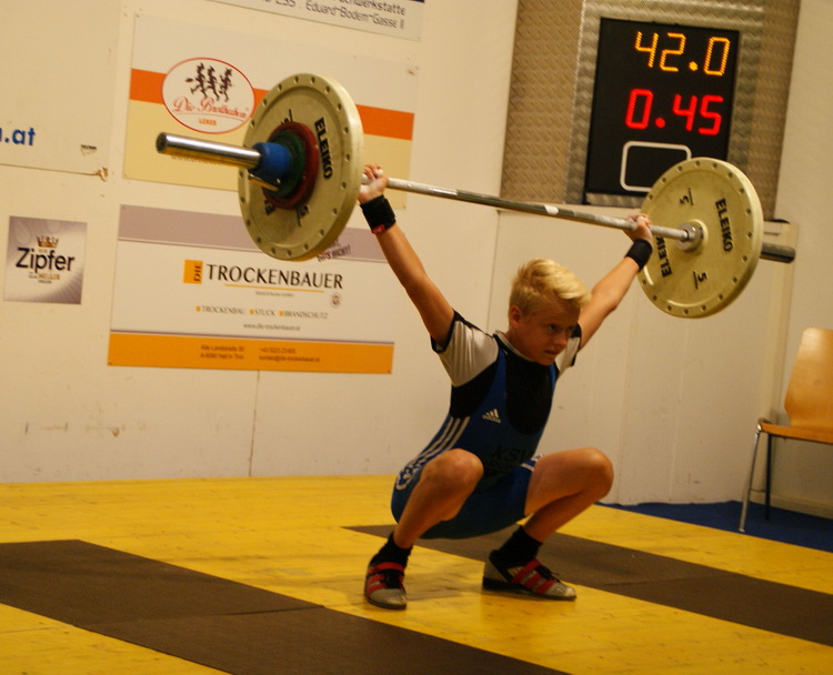 Wohnort - Rum geb. am 04.03.2001 Klasse bis 45 / 50 kg Aktiv seit 2013 Christoph trainiert seit Oktober 2013 beim KSV-RUM sportliche Erfolge 2014: ASKÖ-Bundesmeister - U13 Gesamtsieger Tiroler Schülercup U13 3 x Gold beim Tiroler Schülercup Tiroler U 13 - Meister österr. U 13 - Meister im Mehrkampf 3. Platz - österr. U 13 - Gewichtheben sportliche Erfolge 2015: österr. U 15 Meister - Kat. -50 kg österr. U 20 Meister - Kat. -56 kg Tiroler Meister - Kat. -56 kg Tiroler U 20 Meister - Kat. -56 kg Tiroler U 15 Meister - Kat. -45 kg Staats-EM - 3. Platz - Reißen Kat. -56 kg Staats-EM - 3. Platz - Stoßen Kat. -56 kg Staats-EM - 3. Platz Zweikampf (56 kg) ASKÖ-Bundesmeister - U 15 / Kat.-45 kg 3 Einzelsiege und Gesamtsieg im Tiroler Jugendcup 2015 - U 15 1. Wettkampf: Klubmeisterschaft Dezember 2013 Reißen und Stoßen - Technik 1. richtiger Wettkampf - 15. März 2014 Reißen - 21 kg Stoßen - 30 kg Bestleistungen 2014: Reißen - 37 kg (Tiroler Schüler-Rekord) Stoßen - 47 kg (Tiroler Schüler-Rekord) Tiroler Schüler Rekorde - Kat. -38 kg 34 kg Reißen 42 kg Stoßen / 43 kg Stoßen 75 kg und 77 kg Zweikampf Tiroler Schüler-Rekord - Kat. -40 kg 36 kg und 37 kg Reißen 46 kg und 47 kg Stoßen 81 kg und 84 kg Zweikampf Bestleistungen 2015 - Kat. 45 kg: Reißen - 47 kg (Tiroler U 15 Rekord) Stoßen - 62 kg (Tiroler U 15 Rekord) Bestleistungen - Kat. 50 kg: Reißen - 52 kg Stoßen - 66 kg (Tiroler U 15 / U 17 Rekord) Tiroler U 15-Rekorde - Kat. -45 kg 46 kg / 47 kg Reißen 56 kg / 57 kg / 58 kg / 59 kg / 62 kg Stoßen 102 kg / 103 kg / 104 kg / 106 kg Zweikampf | ||||||||||||||||||||||||||||||||||||||||||||||||||||||||||||||||||||||||||||||||||||||||||||||||||